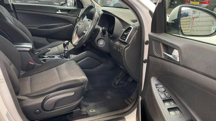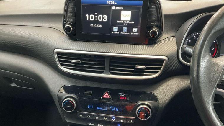 Comes with warranty, 1 former keeper, 2 keys, Full Service history, last done 73850, This 2019 Hyundai TUCSON GDi SE Nav is presented with a clear vehicle history check, offering you peace of mind. This well maintained 1.6 litre petrol model, compliant with Euro 6 emissions standards, features a dual zone climate control air conditioning system to keep everyone comfortable. Navigating tight spots is made easier with rear parking sensors and a rear camera, complemented by automatic headlights that activate with a dusk sensor. For seamless connectivity, it includes Android Auto, allowing you to integrate your smartphone with the car's system.The SE Nav trim level of this TUCSON boasts a generous boot space, ideal for luggage or shopping. Furthermore, its low insurance group rating indicates that running costs are likely to be more affordable compared to similar vehicles. These combined highlights demonstrate the practical and economical advantages this Hyundai TUCSON offers..