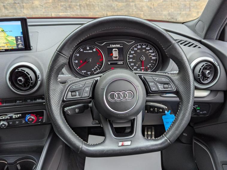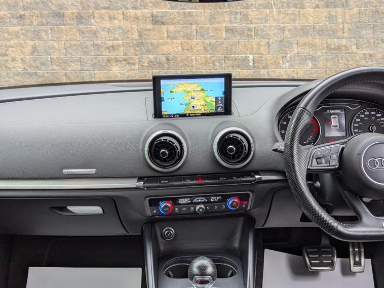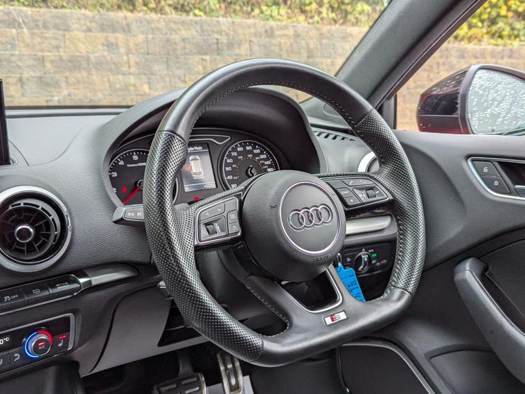 This 2019 Audi A3 TFSI Black Edition offers peace of mind with a clear vehicle history check and a 12 month MOT provided on purchase. This stylish hatchback is equipped with a 1.5 litre petrol engine, meeting Euro 6 emissions standards, and benefits from partial service history. Notable features include striking LED headlights and rear lights with dynamic indicators, dual zone electronic climate control for personalised comfort, and a Bluetooth interface for seamless connectivity. The auto dimming rear view mirror, coupled with light and rain sensors, enhances driving convenience, while rear parking sensors assist with manoeuvring.Experience impressive performance with this Audi A3, capable of accelerating from 0 to 62mph in just 8.2 seconds, demonstrating its agility compared to other vehicles in its class. Its low CO2 emissions also highlight its efficiency. Furthermore, you will appreciate the generous boot space, offering ample room for luggage or shopping, making it a practical choice for everyday use. This A3 comes with a 3 month warranty for added reassurance..