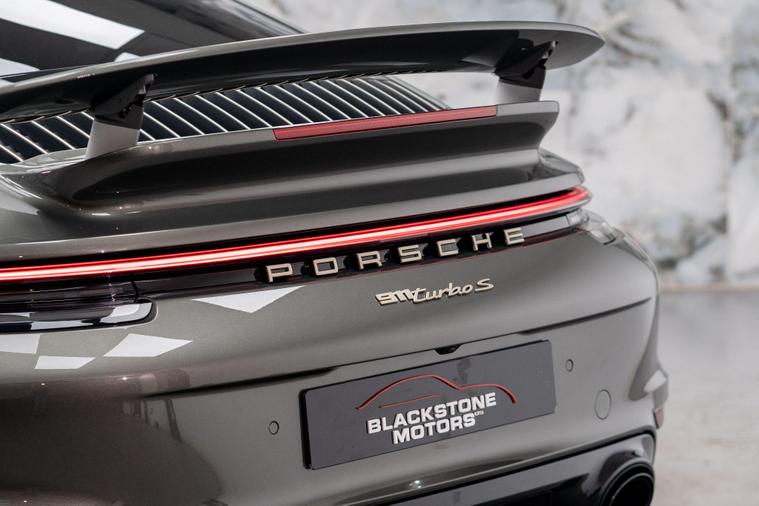 This particular example is finished in Aventurine Green metallic Paintwork with Two-Tone Exclusive Manufaktur leather in Slate Grey. It benefits with a FULL Porsche service history and is still under manufacturers warranty until June 2026. The paintwork has been protected by XPEL PPF Paint Protection Film.The high specification of this Porsche includes:- Burmester High-End Surround Sound System- Sports Exhaust System with Tailpipes in Black- Exclusive Manufaktur Extended Leather Trim Package- Seat Ventilation - Front- Wheels Painted in Satin Aurum- Tinted LED Main Headlights with Matrix Beam including Porsche Dynamic Light System Plus - PDLS Plus- Interior Trim Package with Decorative Stitching in Contrasting Colour- Heated Multifunction GT Sports Steering Wheel Leather with Matt Carbon Panel- 20in Front 21in Rear Alloy Wheels - 911 Turbo S Exclusive Design Wheels- ParkAssist System including Surround View- Lane Keep Assist including Speed Limit Indicator- Porsche Entry- Privacy Glass- Exterior Mirror Upper Trims in Carbon- Rev Counter in Racing Yellow- Exclusive Design Tail Light- Cupholder Trim Leather- Motorsport Decorative Sticker Set in Aurum- Decorative PORSCHE Side Logo in Aurum- Side Model Logo in Aurum8.9% Low rate finance packages available, HP available, LP available, ****Apply for finance on our website for an instant decision****, 5 days driveway insurance available.Take advantage of our full bespoke in house detailing package to suit your needs, inclusive of Paint Protection Film (XPEL), Paint Correction, Nano Ceramic Coating, Trackers, Immobilisers and Bodykits. All of our work can be found on our social media Instagram @blackstonemotorsuk & @limitlessdetailinguk.