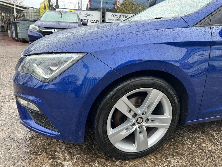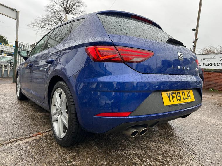 This 2019 SEAT Leon TSI EVO FR presents an exceptional opportunity with its remarkably low mileage of just 36, 000 miles. This Euro 6 compliant 1.5 litre petrol model, finished in the sporty FR trim, offers a compelling blend of performance and practicality. Inside, you'll find the Convenience Pack Plus, which includes automatic headlights, and SEAT Full Link smartphone integration, supporting Mirror Link, Apple CarPlay, and Google Android Auto. For effortless parking, front and rear parking sensors are fitted, complemented by full LED headlights for superior visibility. The cabin also benefits from dual zone climate control, ensuring comfort for all occupants.The SEAT Leon TSI EVO FR is designed to impress, boasting a generous boot space perfect for all your needs. Its low CO2 emissions are a testament to its efficient engineering, making it a more environmentally conscious choice. The 1.5 litre engine delivers a brisk 0-62mph acceleration in just 9.4 seconds, demonstrating its lively performance. These highlights collectively indicate that this SEAT Leon offers a superior driving experience and greater value compared to other vehicles in its class..