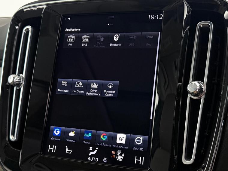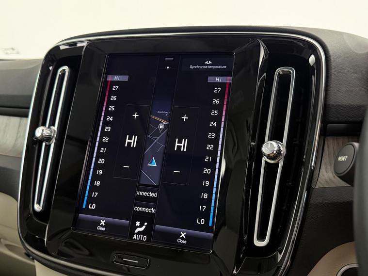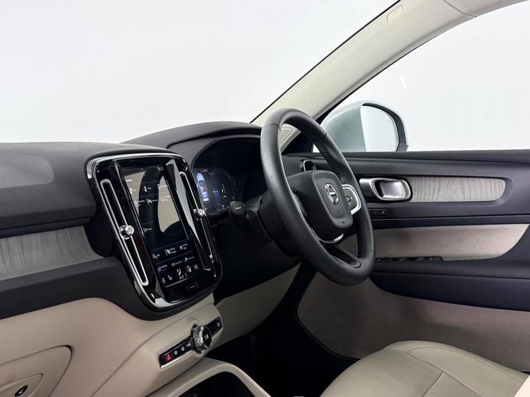 Our Volvo XC40 is finished in Silver. With a great specification, our XC40 includes features such as 19 Inch Alloy Wheels, Heated steering, Electric Folding Mirrors, Front and Rear Electric Windows, Panoramic Sunroof, Air Conditioning, Bluetooth, DAB Radio, Multi-Function Steering Wheel, Parking Sensors, Reverse Camera, Satellite Navigation, USB, Beige Leather Trim, Cup Holders, Electric Memory Seats, Folding Rear Seats, Heated Seats, Rear Central Armrest, Start/Stop Button, ISOFIX, LED Daytime Running Lights, LED Headlights, LED Tailights, Remote Central Locking..