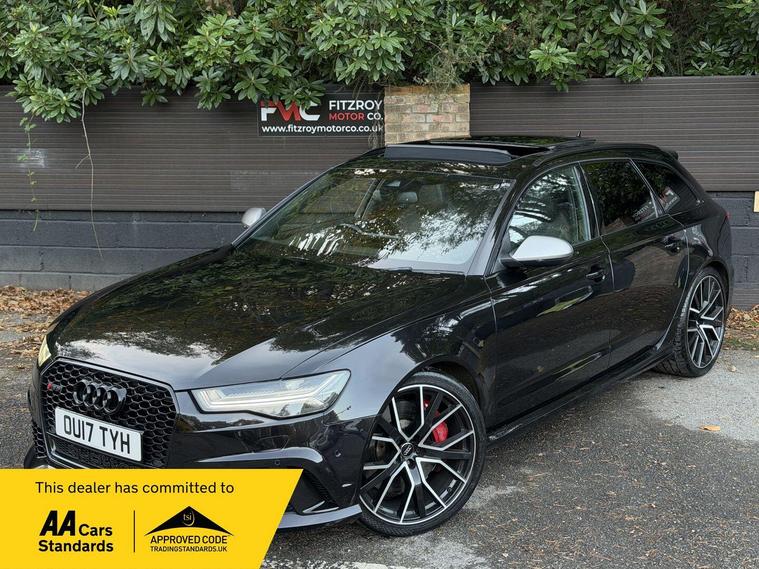 We are thrilled to offer this breathtaking Audi RS6 Performance 4.0 TFSI V8 Quattro, the ultimate blend of supercar performance, everyday practicality, and Audi’s world-class engineering. With a full Audi service history, including a recent main dealer service and gearbox service, this RS6 has been cherished and maintained to the highest standard throughout its life.Finished in the rare and stunning Panther Black Crystal Effect, this RS6 Performance truly stands out. The deep, rich paint shimmers beautifully under the light and is complemented by diamond-cut alloy wheels, black Audi badges, privacy glass, and a tilt-and-slide panoramic roof — creating an aggressive yet elegant road presence.Inside, the cabin is every bit as special, featuring RS Super Sport black leather seats with electric adjustment, memory function, and heating for both driver and passenger. The interior is finished with carbon fibre trim throughout, Bose surround sound, paddle shifters, digital virtual cockpit, Apple CarPlay, Bluetooth audio, handsfree connectivity, DAB/FM/AM radio, reversing camera, front and rear parking sensors, sunroof shade, electric tailgate, and rear seat blinds — all contributing to a truly luxurious driving experience.Under the bonnet lies the 4.0-litre twin-turbocharged V8 engine, producing an astonishing 605 bhp and 750 Nm of torque. This power is channelled through Audi’s legendary Quattro all-wheel-drive system and 8-speed Tiptronic gearbox, launching the RS6 Performance from 0–62 mph in just 3.7 seconds and on to a top speed of 174 mph. The RS6 isn’t just about brute force — its adaptive air suspension and precise steering make it equally comfortable and composed whether cruising the motorway or tackling winding roads.The Audi RS6 Performance is the perfect all-rounder — a supercar in estate form, offering blistering speed, refinement, and practicality all in one package. This particular example, in this specification and condition, represents exceptional value for money and is not to be missed.At Fitzroy Motor Co, all our vehicles are HPI clear, mechan.