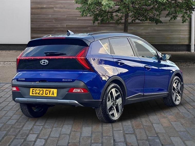 This 2023 Hyundai BAYON T GDi Ultimate is a superb example of modern motoring, boasting a 1.0 litre petrol hybrid engine and Euro 6 emissions. As the Ultimate trim, it comes equipped with a suite of advanced features designed for convenience and comfort. These include striking LED MFR headlights, rear parking sensors for easier manoeuvring, and a smart key system for keyless entry and engine start stop. The automatic headlights with a dusk sensor ensure optimal visibility, while the premium BOSE sound system, featuring 7 speakers and a subwoofer, delivers an exceptional audio experience.This Hyundai BAYON T GDi Ultimate offers an impressive highlight fuel economy of 53 miles per gallon, demonstrating its efficiency. Its low CO2 emissions further indicate its environmentally conscious design, setting it apart from many other vehicles in its class. This combination of advanced technology, efficient performance, and premium features makes the 2023 BAYON T GDi Ultimate a compelling choice for those seeking a stylish and practical vehicle..