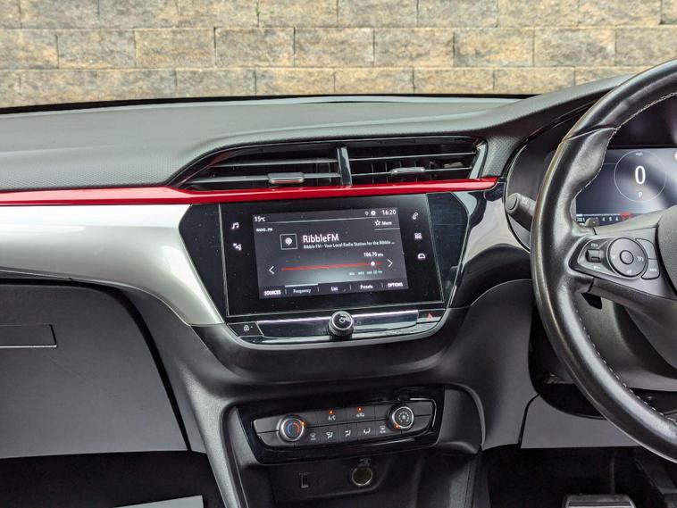 This 2021 Vauxhall Corsa Turbo SRi is presented with a clear vehicle history check, offering you peace of mind. This stylish SRi model is equipped with a responsive 1.2 litre petrol engine, meeting Euro 6 emissions standards. Inside, you'll find a wealth of features designed for comfort and convenience, including refrigerant air conditioning, a 7 inch colour touchscreen multimedia infotainment system with smartphone integration for Android Auto and Apple CarPlay, and Bluetooth connectivity. For added ease, it also boasts rear parking distance sensors and automatic headlights as part of the Sight and Light Pack.Experience an engaging drive with the Vauxhall Corsa Turbo SRi, which accelerates from 0 to 60 miles per hour in just 8.2 seconds, demonstrating its spirited performance. The inclusion of shift paddles further enhances the driving experience, allowing for manual gear selection. These features, combined with its Euro 6 compliant 1.2L petrol engine and comprehensive infotainment system, position this 2021 Corsa SRi as a compelling choice for those seeking a well equipped and dynamic compact car..