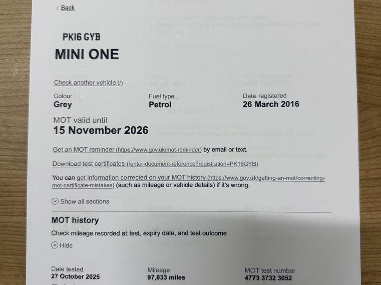 Here at Ezat Car Sales, we have on offer a stunning 2016 MINI Hatch One which boasts a fresh 12 months MOT, offering excellent peace of mind for the coming years. It starts and drives faultlessly and both the interior and exterior is in great condition. It comes with a part service history from MINI and the most recent service was at 28/10/2025 at 97802 miles. This 1.2 litre petrol model, registered in 2016, is a Euro 6 compliant vehicle. It comes with a 6 month warranty for added security. Notable features include Bluetooth Hands Free Function with USB Audio and manual Air Conditioning, ensuring a comfortable and connected driving experience. The car has been thoroughly checked and test driven by us to ensure you get a great deal.This MINI Hatch One offers several highlights that set it apart. Its impressive fuel economy of 61 mpg means fewer trips to the petrol station, making it an economical choice. The vehicle also sits in a low insurance group, which can help reduce your annual running costs. Furthermore, its low CO2 emissions are beneficial for the environment. For those interested in performance, this MINI Hatch One accelerates from 0 to 62 mph in just 9.9 seconds, demonstrating a responsive drive. Again, this car comes with 6 months warranty to give you peace of mind and has already been thoroughly checked by us.Feel free to give us a call to book a viewing. Deposits are welcomed. This car comes with warranted mileage, full vosa history, comes with all documents, part EXCHANGE welcome, all our cars come fully VALETED, inspected and test drives are welcome, all major credit/debit card and online payments accepted, FINANCE can be arranged, nationwide delivery available. Visit our website for more affordable cars dealer's website
