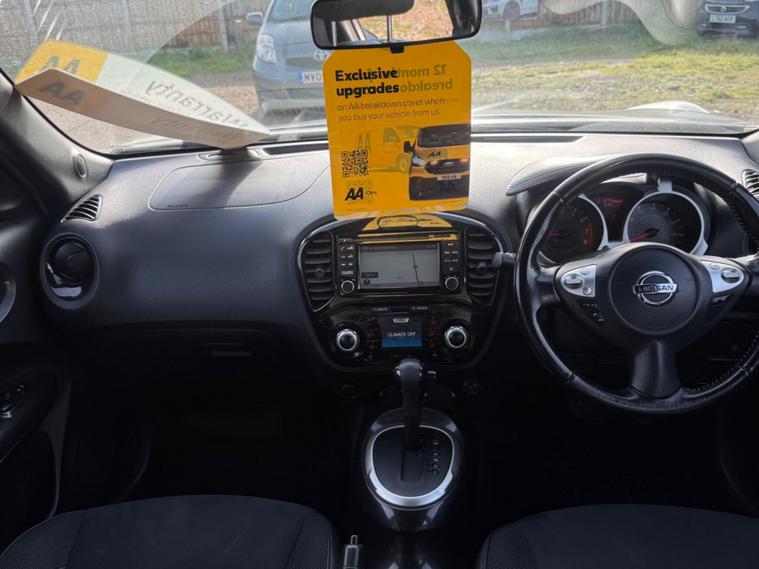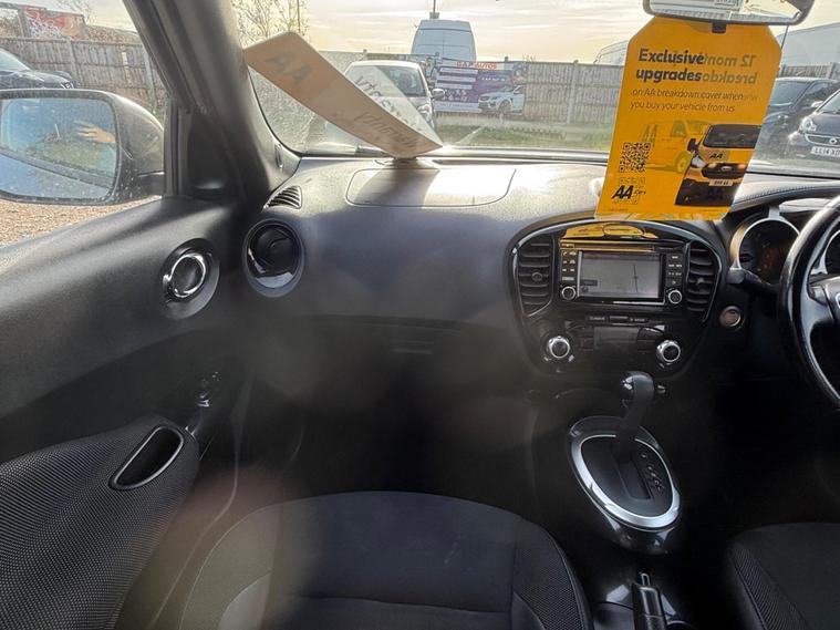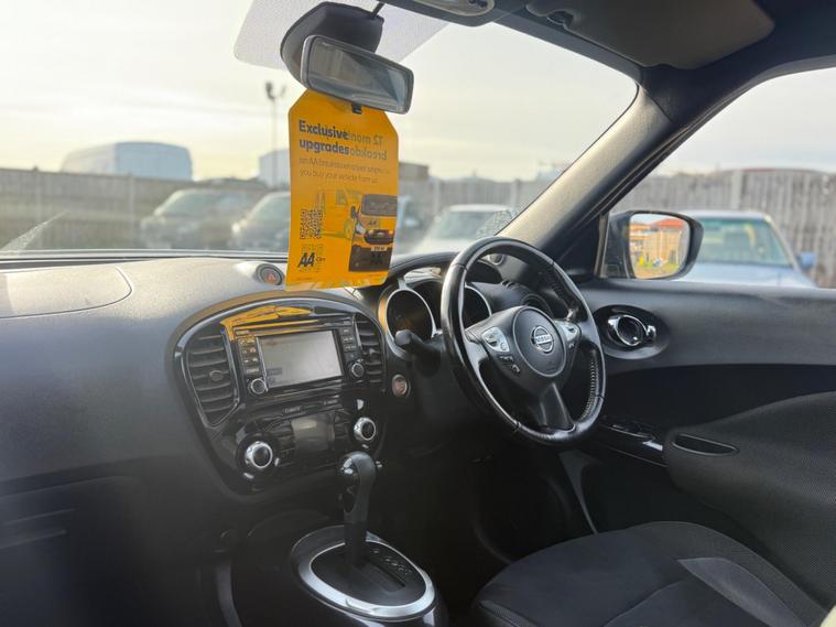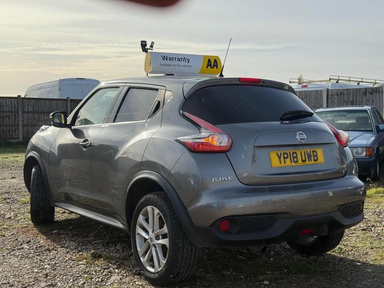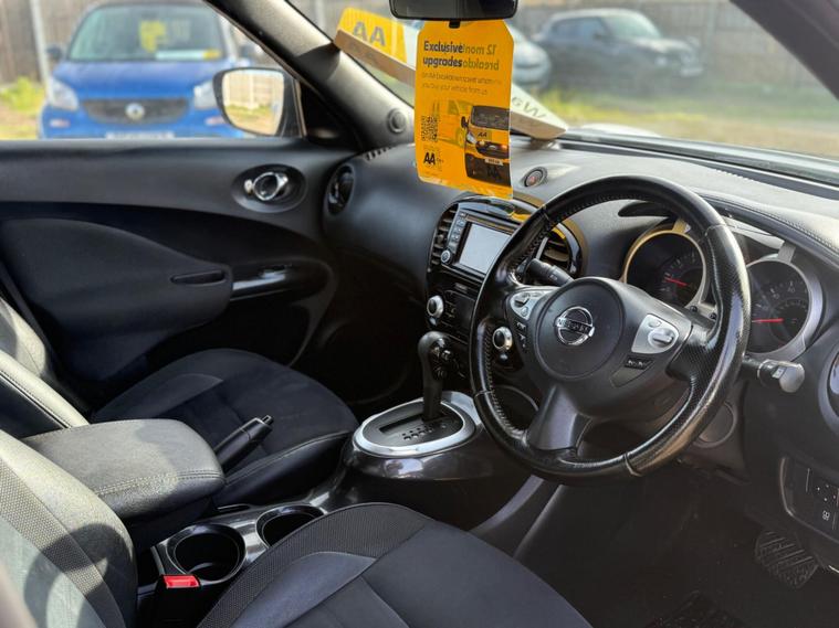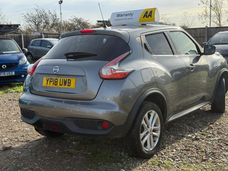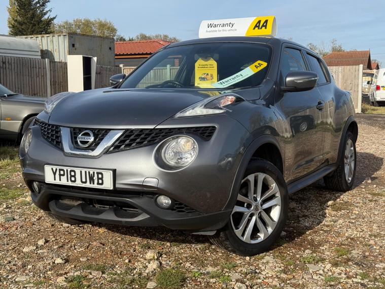Boasting a full service history and a clear vehicle history check, this 2018 Nissan Juke N Connecta represents excellent provenance.  This 1.6 litre petrol model, compliant with Euro 6 emissions standards, has been owned by only one person.  It comes equipped with Intelligent Key for keyless entry and push button start, a colour reversing camera with parking assistance, automatic climate control with a pollen filter, and Bluetooth integration for your telephone. Also included is a 12 month AA Breakdown cover , and a 1 month warranty for engine, gearbox and clutch. AA extended warranty is available to purchase for this car.This vehilce comes with 6 months or 10000 miles warranty on the Gearbox.This Nissan Juke N Connecta offers several advantages over similar vehicles. Its fuel economy of 47 miles per gallon is a notable highlight, meaning fewer trips to the petrol station. Furthermore, its low insurance group rating indicates that running costs will be kept to a minimum. A 12 month MOT will be provided on purchase, and the vehicle is covered by a 1 month warranty, offering peace of mind..