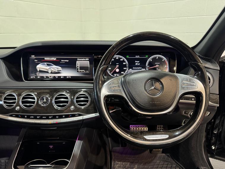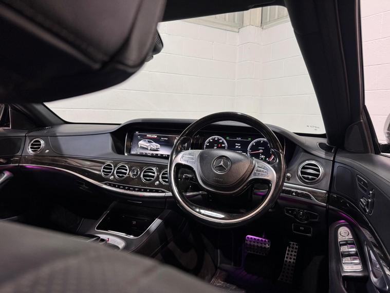We are delighted to offer this exceptional Mercedes-Benz S350L V6 BlueTEC AMG Line G-Tronic+, finished in striking Obsidian Black Metallic. This long-wheelbase saloon perfectly embodies sophistication and comfort, combining timeless design with refined performance.Under the bonnet sits a smooth and efficient 3.0-litre V6 BlueTEC engine paired with the seamless G-Tronic+ automatic transmission, delivering effortless power and refinement.The exterior is enhanced by stunning 20-inch AMG alloy wheels, Privacy Glass, and the Electric Panorama Glass Sunroof, allowing light to flood the cabin while maintaining a sense of exclusivity.Inside, the cabin showcases Mercedes-Benz craftsmanship at its finest, featuring premium Black Leather upholstery complemented by elegant Black Poplar Wood trim and a Wood and Leather-Trimmed Steering Wheel. Heated front and rear seats ensure comfort for all occupants, while Ambient Lighting sets a relaxed and luxurious tone for every journey.A Reversing Camera adds everyday practicality, making manoeuvring simple and stress-free.This S350L AMG Line combines presence, comfort, and elegance in equal measure – a true flagship saloon offering an exceptional driving experience both for driver and passengers alike..