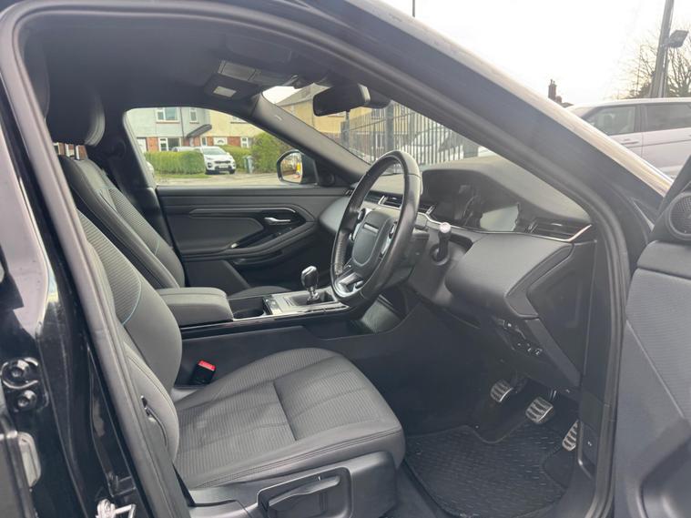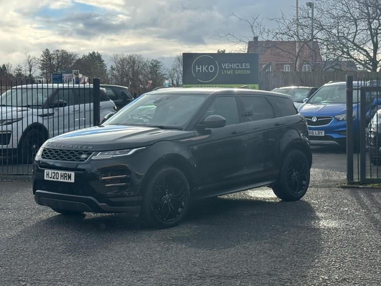 Welcome to HKO Vehicles Lyme GreenWe are delighted to present this striking Land Rover Range Rover Evoque 2.0 D150 R-Dynamic Manual FWD, finished in gleaming black and presented in excellent condition throughout. Registered in 2020 (20) and having covered 78, 000 miles, this impressive example has had just two careful owners from new. The R-Dynamic model perfectly blends modern design, efficiency, and luxury with the distinctive style and capability you expect from the Range Rover brand.Powered by a responsive 2.0-litre D150 diesel engine producing 150 PS, paired with a smooth 6-speed manual gearbox, this Evoque delivers refined performance and excellent fuel economy. Its Front-Wheel Drive (FWD) setup provides a comfortable and efficient drive, ideal for both city use and long-distance journeys.The R-Dynamic specification offers a fantastic range of premium features and stylish enhancements, including: • Half leather and suede sports seats • Touchscreen infotainment system with satellite navigation, Bluetooth, and DAB digital radio • Rear parking sensors and reversing camera • Dual-zone climate control • Cruise control and multifunction steering wheel • LED headlights with signature daytime running lights • Automatic lights and wipers • 18-inch alloy wheels • Sporty R-Dynamic exterior styling with gloss black accents and premium finishesThis vehicle has been well maintained with a full service history and is presented beautifully inside and out, reflecting careful ownership throughout.We are proud to be an AA Approved Dealer, and with this vehicle you will receive 12 months AA Breakdown Cover, a fresh 12-month MOT, and a 3-month nationwide warranty for complete peace of mind.Finance is available – simply apply via our website or call us on 01260475378 for an instant decision. Same-day collection is available, subject to vehicle status.Visit HKO Vehicles Lyme Green today to view and test drive this superb Range Rover Evoque 2.0 D150 R-Dynamic Manual – a modern, efficient, and stylish SUV that delivers premium quality and everyday practicality.