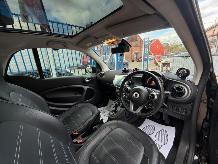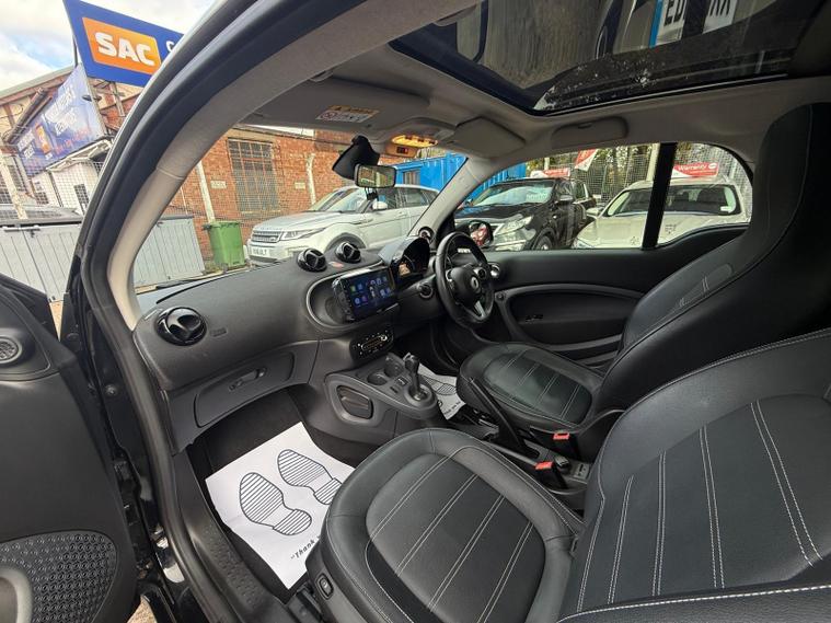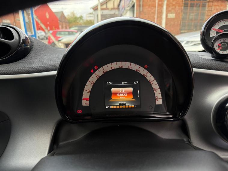 Boasting a single owner from new and a clear vehicle history check, this 2016 Smart Fortwo T Prime (Premium) presents a compelling proposition. Powered by an efficient 0.9L Euro 6 compliant petrol engine, this model offers an impressive fuel economy of 69 mpg, making it an economical choice for city driving and beyond. The Prime trim level ensures a well equipped experience, featuring a fixed panoramic roof with sun protection, heated front seats for added comfort, and rear parking assistance to simplify manoeuvring.This Smart Fortwo also benefits from a Bluetooth hands free system and audio streaming via Bluetooth module, keeping you connected and entertained on the go. With only 53, 800 miles on the clock and a 12 month MOT provided on purchase, this vehicle demonstrates excellent provenance. Its low CO2 emissions further highlight its efficiency, positioning it as a more environmentally conscious and cost effective option compared to many similar vehicles on the market..