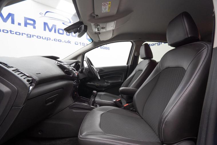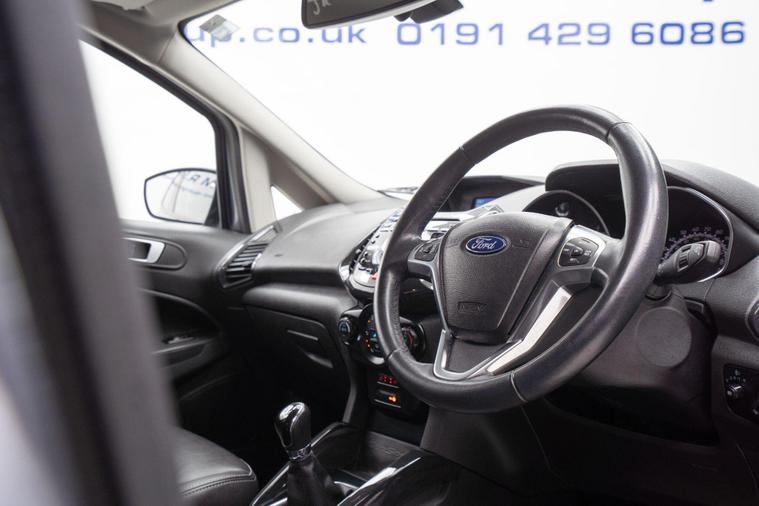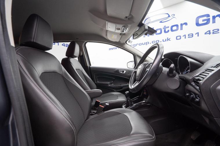 This 2017 Ford EcoSport T Titanium S presents an exceptional opportunity with its remarkably low mileage of just 45, 102 miles, a significant advantage for its age. This Euro 6 compliant 1.0L petrol model boasts a clear vehicle history check, offering peace of mind. The Titanium S trim level comes equipped with a desirable Winter Pack, featuring heated seats for those colder journeys, and rear parking sensors to aid manoeuvrability. Convenience is further enhanced by the KeyFree System for keyless entry and automatic headlights that adjust to lighting conditions. Inside, you'll find EATC Electronic Automatic Temperature Control for effortless climate management.The Ford EcoSport T Titanium S stands out with its impressive fuel economy, achieving a highlight of 52 miles per gallon, which is notably better than many comparable vehicles. Its low CO2 emissions also contribute to its appeal, making it a more environmentally conscious choice. This combination of efficient performance, practical features, and excellent provenance makes this EcoSport a compelling option for those seeking a well maintained and economical compact SUV.Please call our experienced sales team on 01914800597 for any additional specification queries, an in depth appraisal/ Video call or maybe we can help fund your new car. All our vehicles are prepared to the highest standards by our expert technicians in our fully equipped preparation centre as we're an AA approved dealer. Every car must go through a strict and thorough inspection, Items that require attention, mechanically or cosmetically are addressed prior to delivery. We offer a wide range of Finance and Warranty packages as well as fantastic trade rates for allow wheel refurbs/colour changes, window tinting and much more. Vehicles are supplied with pre delivery service, 12 months MOT, 12 Months AA breakdown cover and 6 months Auto Protect warranty that can be extended up to 24 month. All vehicles are HPI clear a full report can be supplied at point of sale. Home Delivery can be arranged throughout the UK. We welcome part exchanges.