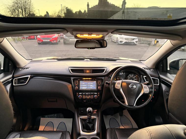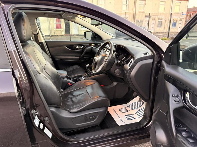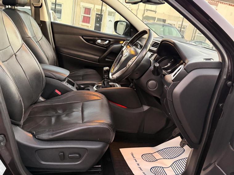 This 2014 Nissan Qashqai dCi Tekna offers an exceptional blend of efficiency and advanced technology. As a Tekna trim, this 1.5L diesel model is equipped with a suite of impressive features designed to enhance your driving experience. Navigate tight spaces with ease thanks to the Around View Monitor, providing a 360 degree bird's eye view of your surroundings, complemented by rear parking sensors and a 360 degree camera system. The Qashqai also boasts Bi-LED headlights with automatic activation, ensuring optimal visibility in all conditions. Safety is further bolstered by the Blind Spot Warning system, alerting you to vehicles in your blind spots.Experience remarkable economy with this Qashqai, achieving an outstanding 74 miles per gallon, which indicates it is more economical than many similar vehicles. Its low CO2 emissions also contribute to a more environmentally friendly drive, and it sits in a low insurance group, suggesting lower running costs compared to other cars in its class. This combination of fuel efficiency, advanced safety features, and cost effective ownership makes the 2014 Nissan Qashqai dCi Tekna a compelling choice.FeaturesCruise controlFront and Rear parking sensor Heated front seat 360 Park assist cameraAir conditioning Climate controlFull Leather seat trimAlloy wheelsPanoramic RoofNavigationBlind spot monitor£20 Annual road taxWill have 12 months MOT but no warranty due to high mileage.