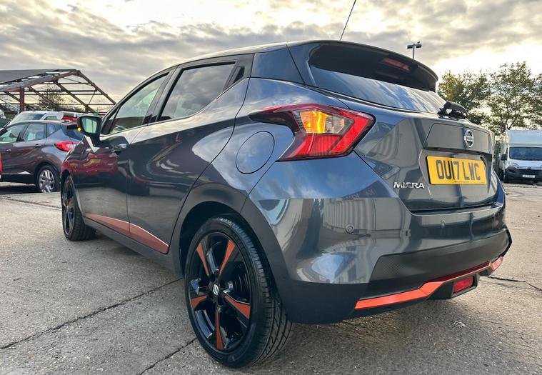 Presenting this nicely clean Nissan Micra for Sale. very good body condition interior and exterior. Has 360 degrees around view Camera and Parking Sensors. Bluetooth. Sat Nav. Electric Mirrors. Mechanically perfect low miles. Warranted engine and gearbox for 3 months through our company and flexible to extend warranty terms. 12 Months Free AA breakdown Cover. Service just done changed oil-oil filter-air filter. NEW front pair Wishbone and Linkage fitted both sides. MOT FRESH just done to clear advisories after been fixed. HPI clear. 2 intelligent keys. only 2 previous owners. For more details please call us This 2017 Nissan Micra IG-T Tekna offers an exceptional blend of efficiency and advanced technology. As a Euro 6 compliant model, it showcases a 0.9L petrol engine designed for economical driving, achieving an impressive 61 miles per gallon. This Tekna trim level comes equipped with a suite of convenient features, including rear parking sensors and a rear view camera to aid maneuvering, alongside automatic headlights for enhanced visibility. The Nissan Intelligent Key with an engine start button provides keyless entry and effortless starting, while the BOSE Personal Audio Pack delivers a premium sound experience.The highlights of this Nissan Micra IG-T Tekna demonstrate its superior value. Its low insurance group rating means more affordable ownership, and its low CO2 emissions contribute to a more environmentally friendly drive. These factors, combined with its excellent fuel economy of 61 mpg, position this vehicle as a smart and cost effective choice compared to other cars in its class..