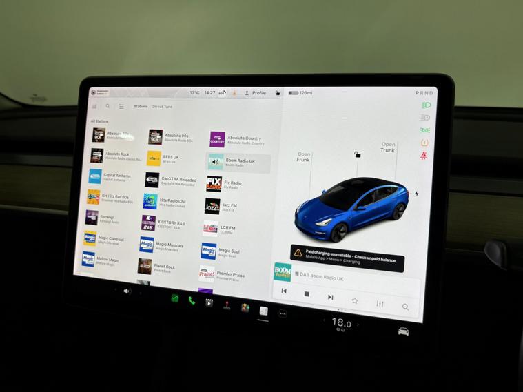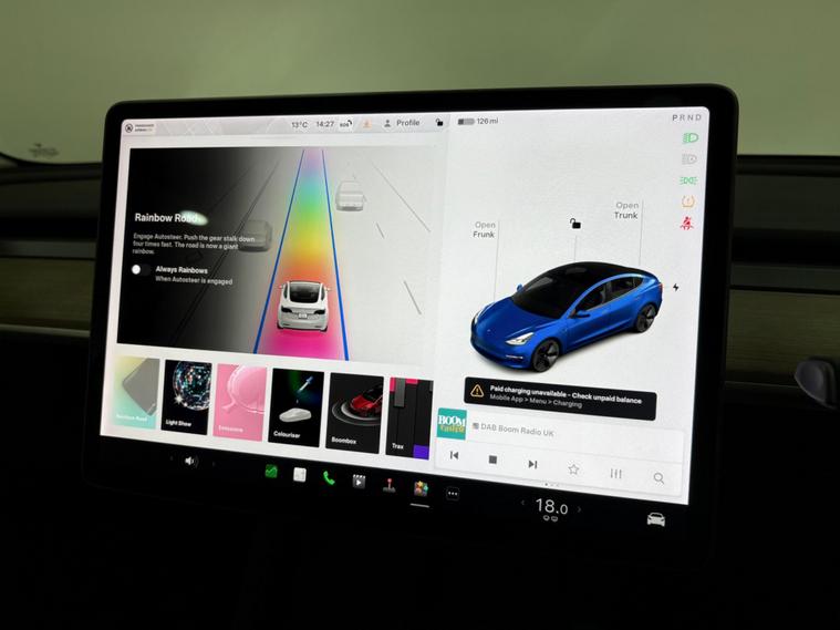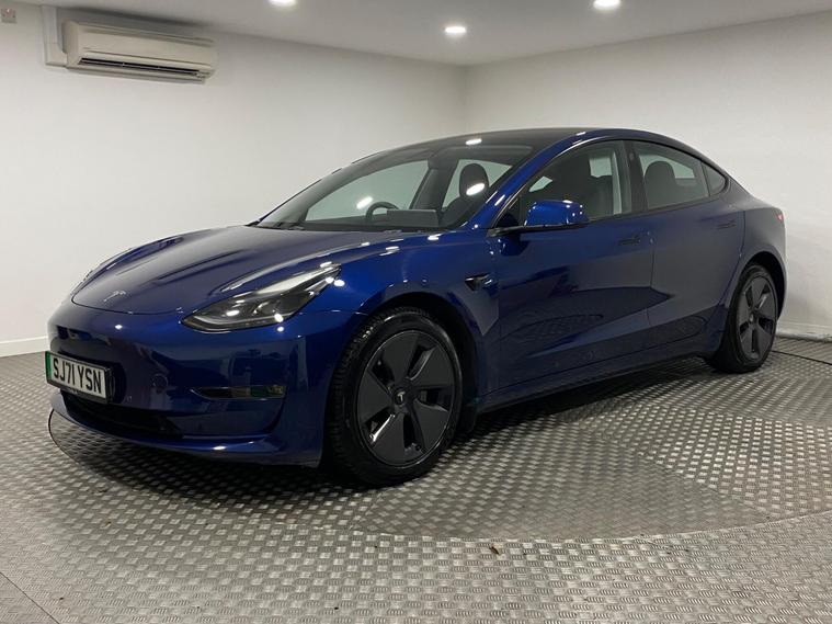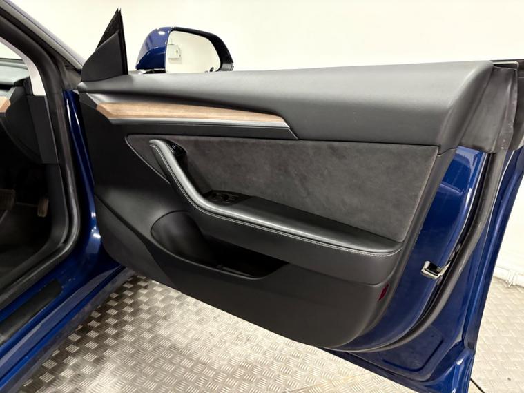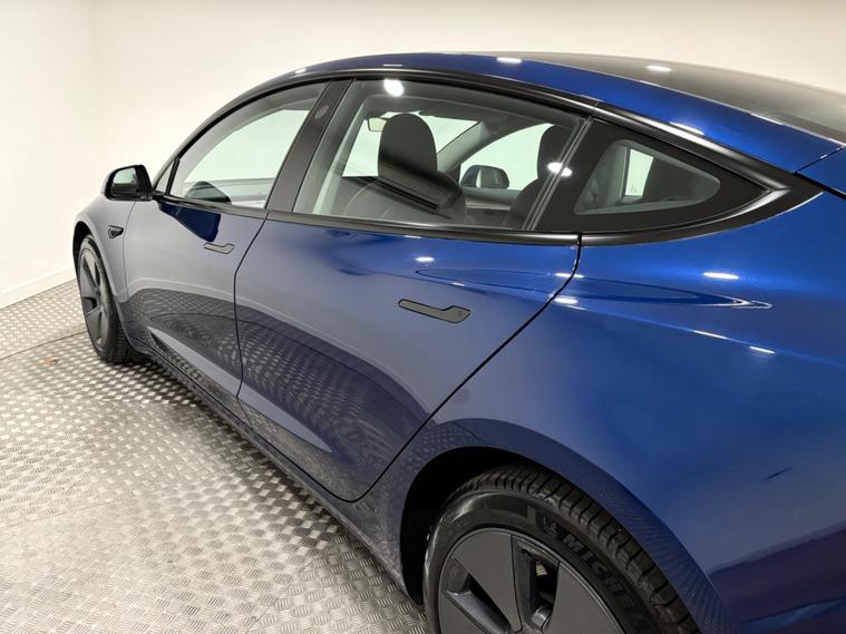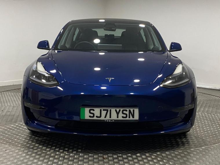 This 2021 Tesla Model 3 Long Range presents an exceptional ownership proposition with its single owner and remarkably low mileage of just 29, 685 miles. Finished in metallic blue with black leather interior and supplied with 2 keys. As an electric vehicle with Four Wheel Drive, this Model 3 boasts a substantial 78 kWh battery. Its MOT is valid until August 2026, providing peace of mind for the new owner. Inside, you'll find a host of convenient features including a heated steering wheel and heated front seats, perfect for colder journeys. Safety and driver assistance are enhanced by Blind Spot Information and front parking sensors, while LED headlights ensure excellent visibility.The large boot space offers practical storage solutions for everyday needs and longer trips. This Model 3 Long Range stands out with its extended range capability, a significant advantage over many other electric vehicles, allowing for fewer charging stops. Charging is convenient, with a full charge at home taking approximately 12 hours using a 7kW charger, and a rapid charge to 80% achievable in just 26 minutes at a public charging station. These highlights demonstrate the Model 3's efficiency and user friendly design, making it a compelling choice for those seeking a premium electric driving experience..