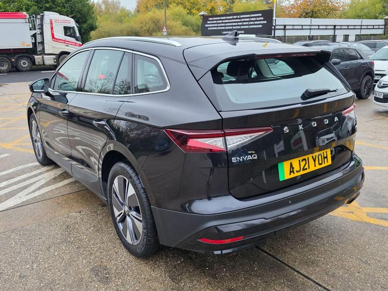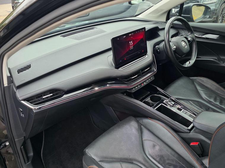 This 2021 Skoda Enyaq 80 is a superb example, having had only one owner and boasting exceptionally low mileage for its age at just 43, 010 miles. As a fully electric vehicle, it offers a substantial battery total capacity of 82 kWh, providing a maximum range of 331 miles when new. This Enyaq is equipped with desirable features including dual zone climate control, Bluetooth connectivity, and a 2 spoke leather heated multi-function steering wheel with DSG paddles. For convenience, it also includes rear parking sensors and a comprehensive Parking Package with front sensors and a rear camera.The impressive battery capacity of this Skoda Enyaq 80 means it can achieve a maximum range of 331 miles from new, setting it apart from many other electric vehicles. Charging is also efficient, with a full charge at home taking approximately 13 hours, and the fastest public charging time from empty to 80% being just 1 hour and 14 minutes. Furthermore, this model benefits from a large boot space, offering ample practicality for everyday use and longer journeys..