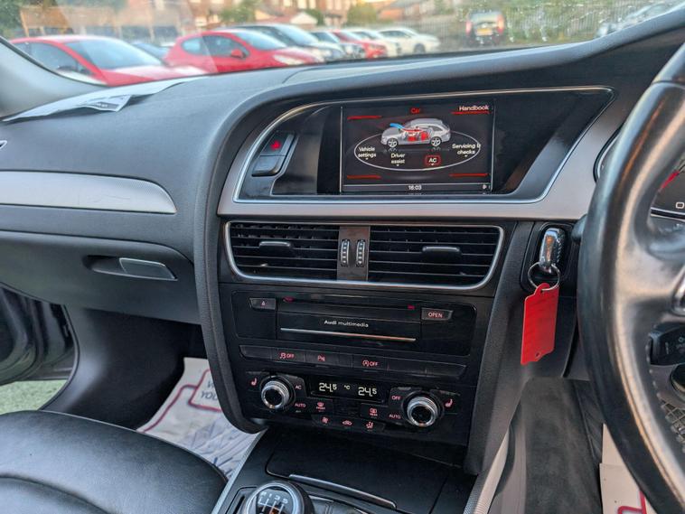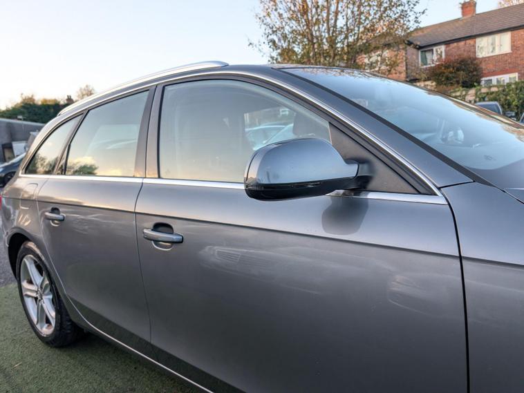 Audi A4 Avant 2.0 TDIe SE  – Superb Condition | Low Mileage | Full Service HistoryCLICK & COLLECT AVAILABLE – Includes Fresh Service, A/C Regas, MOT, and WarrantyFinance Available – Starting from 9.9% APRWe are delighted to offer this fantastic example of the AUDI A6 AVANT with alloy wheels and a fantastic black leather interior.-Leather steering wheel with audio controls.-Cruise controls.-Centre console with SATNAV and bluetooth media-Front and rear parking sensors-Cambelt last replaced in 2019.-Rear electric tailgate.✅ Full Service History✅ Mechanical Inspection Report Included✅ Minimum 6 Months MOT✅ Warranty Included✅ HPI Clear✅ Fully Valeted✅ Engine & Gearbox Fully Inspected by On-Site MechanicsWhy Buy from Liv Motors?We’re a family-run business with a friendly, experienced team of customer service advisors and qualified mechanics on-site. When you purchase from us, you’re not just buying a car – you’re investing in peace of mind.We Offer:? Car Finance Options? Part Exchange Welcome?️ Service Plans Available?️ Comprehensive WarrantyTest Drives Available | Contact Us Anytime with Your Queries – We’re Here 24/7!? Direct Line: 01616232975? Address: Liv Motors, Poppythorn Lane, Prestwich, Manchester, M25 3BS? Opening Hours: 9:00 AM – 6:00 PM Daily? After 6 PM – Appointments Only.