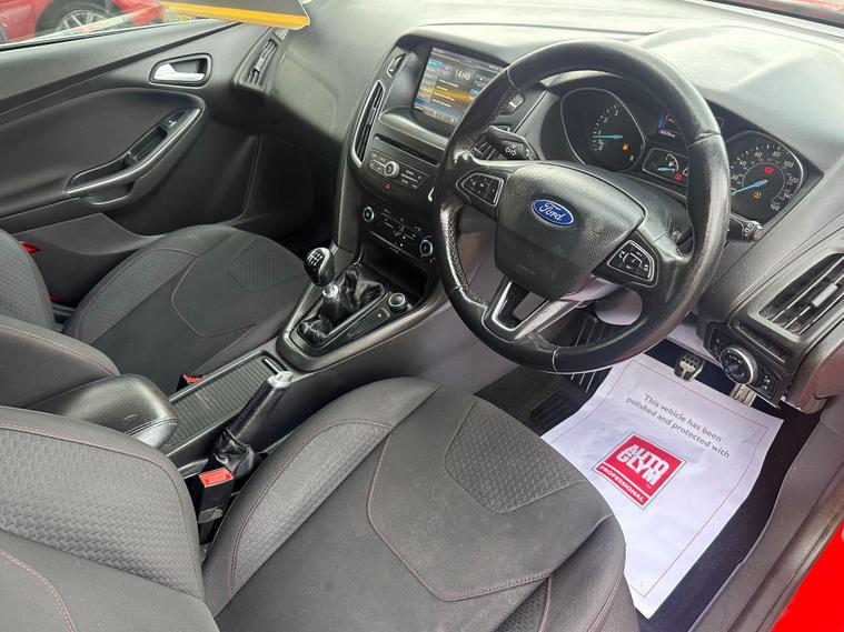 This 2015 Ford Focus T Zetec S offers peace of mind with a 3 month warranty and a full 12 months MOT provided on purchase. This Euro 6 compliant 1.5 litre petrol model comes with a KeyFree system for effortless entry and ignition, alongside Bluetooth connectivity for seamless audio streaming. Inside, you'll find air conditioning to keep you comfortable in all conditions, and the spacious boot offers ample room for all your luggage.The Focus T Zetec S stands out with its impressive acceleration, reaching 0-62mph in just 8.9 seconds, demonstrating its responsive performance. This combination of practical features, including its generous boot space, and dynamic capability makes this Ford Focus a compelling choice for those seeking a well equipped and engaging driving experience.This vehicle has some service history and will be freshly serviced at point of sale along with a new 12 month MOT.It comes with features such as satellite navigation, dab stereo system, multi function steering wheel, cruise control, bluetooth, keyless start and remote central locking with 2 x keys.It is presented in great condition throughout and drives excellent.Viewing, test drive and inspection welcome.Finance available..