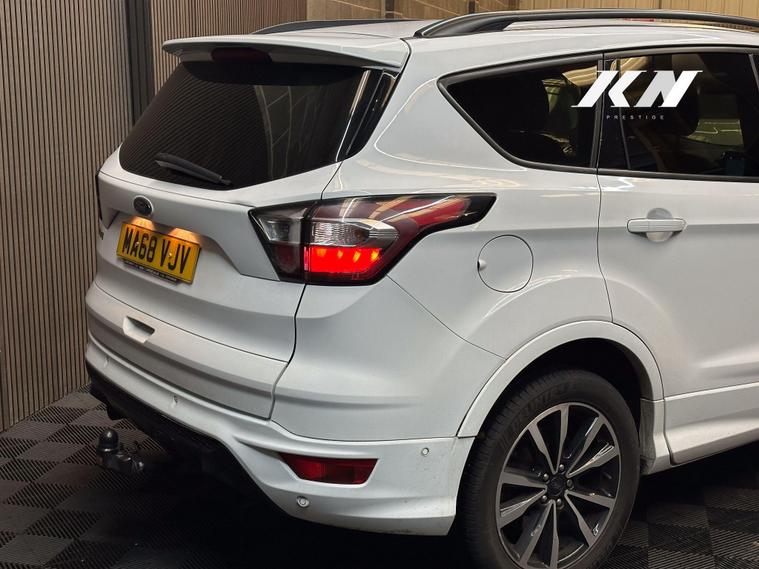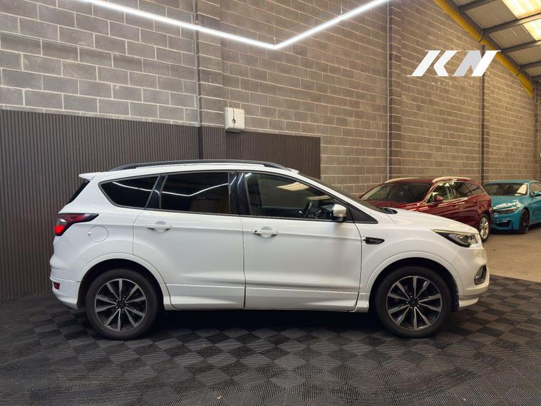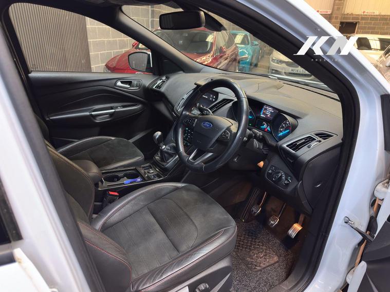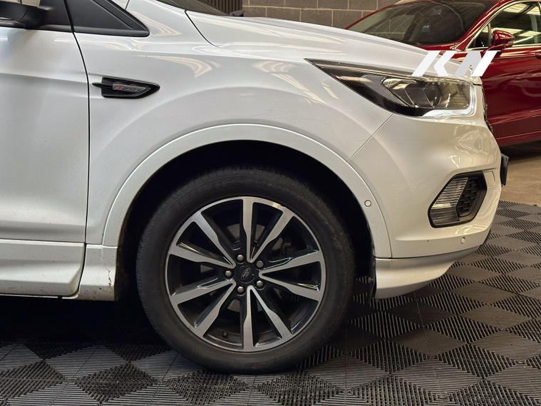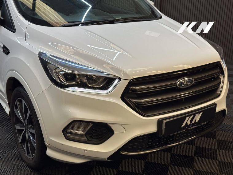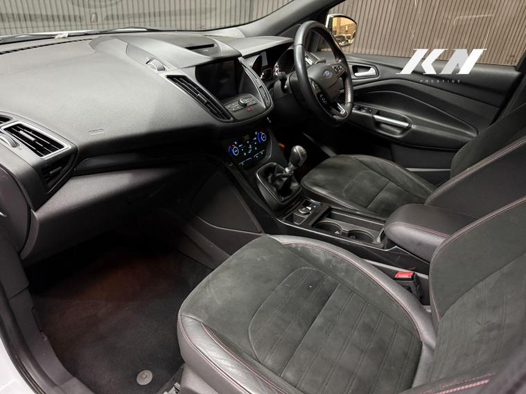 This 2018 Ford Kuga TDCi ST-Line presents a compelling proposition with its remarkably low mileage for its age, having covered just 56, 205 miles. This Euro 6 compliant 1.5L diesel model boasts a clear vehicle history check, offering peace of mind. The ST-Line trim level is enhanced by the ST-Line Style Pack, which includes striking Xenon headlights. Inside, you'll find comfort and convenience with Dual-Zone Electronic Automatic Temperature Control and the Ford DAB Navigation System featuring Ford SYNC3 with Bluetooth connectivity. Navigating tight spots is made effortless thanks to the Enhanced Active Park Assist, complete with front and rear parking sensors. Automatic halogen headlights with LED daytime running lights further add to the sophisticated lighting system.This Ford Kuga stands out from similar vehicles due to its excellent running costs. Its low CO2 emissions contribute to a more environmentally conscious drive, while its position within a low insurance group means more affordable ownership. These factors, combined with its comprehensive feature set and well maintained provenance, make this Kuga TDCi ST-Line a practical and appealing choice for discerning drivers..