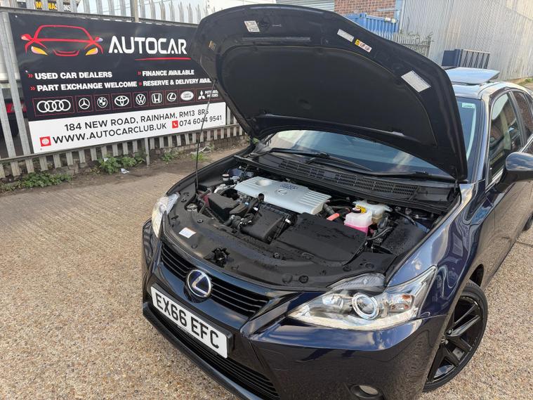 This 2016 Lexus CT 200h Sport is a prime example of refined engineering and thoughtful ownership. Powered by an efficient 1.8L Petrol Hybrid engine, this Euro 6 compliant model offers a smooth and economical driving experience. The Sport trim level enhances its appeal, featuring a striking Black Roof and the desirable Sport Pack. Inside, you'll find comfort is paramount with heated front seats, while the LED headlights with halogen high beam ensure excellent visibility. Parking is made simpler with the integrated rear parking assistance sensors.The Lexus CT 200h Sport stands out with its generous boot space, offering practicality for everyday needs and longer journeys. The combination of its hybrid powertrain, advanced lighting, and parking aids demonstrates a superior approach to compact car design and functionality compared to many other vehicles in its class. This model is designed to provide a premium and convenient ownership experience..