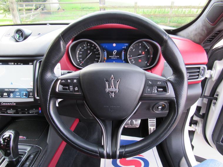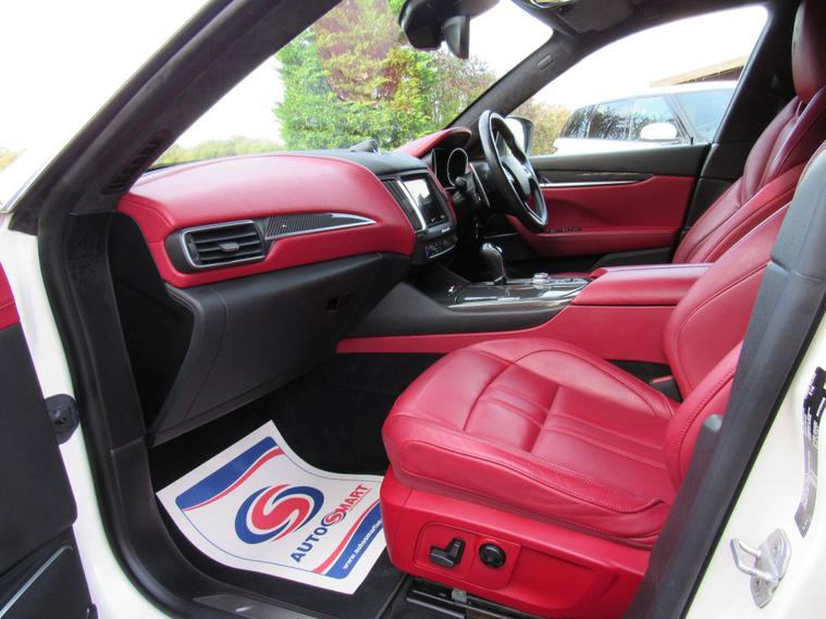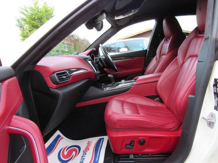 Hello & welcome to CMC Automotive. Here at CMC we are an approved AA trusted dealer. All vehicles come with nationwide warranty. We are delighted to offer this beautiful, high specification Maserati Levante 3.0D 4WD Euro 6. 2 Keys. Service history with vehicle. Finished in Bianco pearl white with heated front & rear red leather seats. Boasts an excellent specification, please see below for full specification & extras. ALL OUR VEHICLES COME HPI CLEAR. AA HISTORY CHECKED. WE OFFER COMPETITIVE FINANCE PACKAGES, APPLY ONLINE. NATIONWIDE DELIVERY AVAILABLE. EXTENDED WARRANTIES AVAILABLE. FCA APPROVED DEALER. ICO COMPLIENT DEALER. PART EXCHANGE WELCOME..
