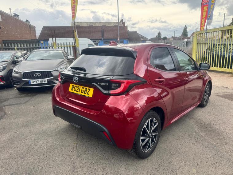 HPI CLEAR .FINANCE AVAILABLE .NEW SERVICE .NEW MOT FREE 3 MONTHS WARRANTY. This 2021 Toyota Yaris VVT-h Design is presented with a clear vehicle history, offering you peace of mind. This stylish hatchback features a 1.5L petrol hybrid engine, meeting the Euro 6 emission class. Inside, you'll find automatic air conditioning for your comfort, LED headlights for improved visibility, and a reversing camera to assist with parking. Stay connected on the go with Bluetooth connectivity and seamless smartphone integration, including Apple CarPlay and Android Auto.The Yaris VVT-h Design stands out with its impressive fuel economy, achieving an outstanding 69 miles per gallon, which is significantly better than many other vehicles in its class. This efficiency, combined with its low CO2 emissions, makes it an economical and environmentally conscious choice. The Design trim level ensures you benefit from a well equipped and modern driving experience..