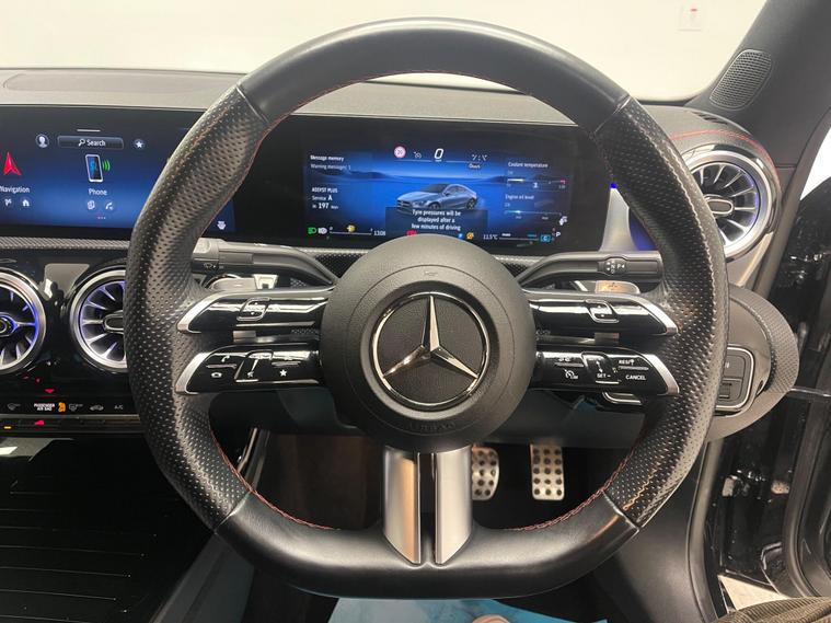 This 2023 Mercedes Benz CLA200h AMG Line (Executive) presents a superb ownership opportunity, having been meticulously maintained by just one owner from new. This stylish saloon boasts a sophisticated 1.3L petrol hybrid engine, adhering to the Euro 6 emission standards. The AMG Line trim enhances its sporty appeal, while practical features like Headlamp Assist for automatic headlight activation and a Parking Package with a reversing camera ensure ease of use. Inside, you'll appreciate the comfort of heated front seats and seamless connectivity through Bluetooth and smartphone integration, including both Apple CarPlay and Android Auto.The Mercedes Benz CLA200h AMG Line stands out with its impressive fuel economy, achieving a remarkable 55 miles per gallon, and its low CO2 emissions, making it a more environmentally conscious choice compared to similar vehicles. This combination of efficiency, advanced technology, and the prestige of a single owner makes this particular CLA a compelling proposition for discerning drivers..