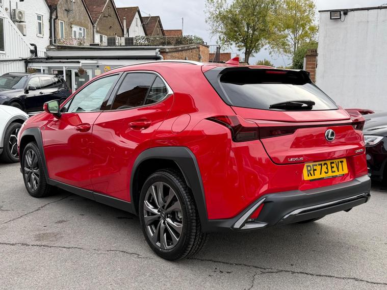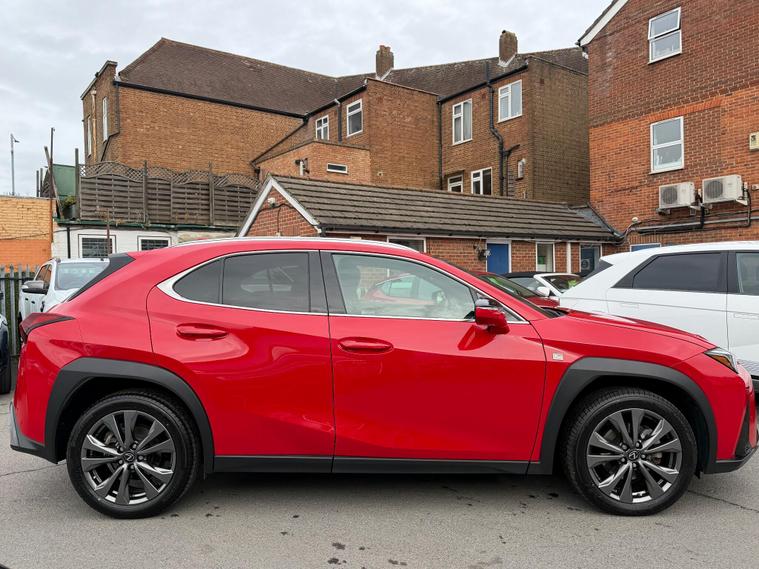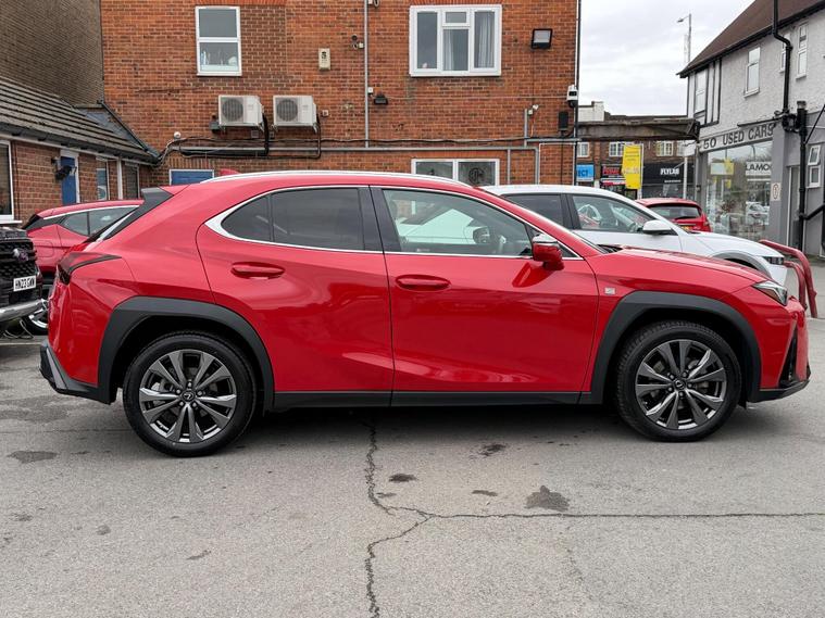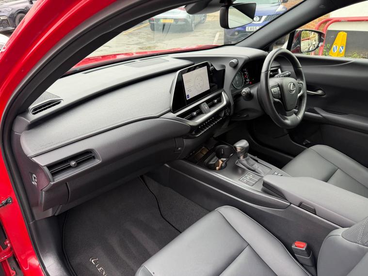 With an incredibly low mileage of just 9000 miles, this 2023 Lexus UX 250h F Sport Design represents an exceptional find. This Euro 6 compliant vehicle boasts a full dealership service history, with its last service completed on 23rd December 2024 at 6215 miles, and its MOT remains valid until December 2026. The 2.0 litre petrol hybrid engine offers a smooth and efficient driving experience, complemented by the F Sport Design trim which includes Bi-LED headlights with an Auto High Beam System, a Premium Pack featuring heated seats and steering wheel, front and rear parking sensors, and a rear camera. For enhanced safety and convenience, it is equipped with the Lexus Safety System Plus, including Adaptive Cruise Control, and a Blind Spot Monitor with Rear Cross Traffic Alert and Auto Brake. Connectivity is seamless with Wireless Apple CarPlay and Wired Android Auto.This Lexus UX 250h F Sport Design stands out with its impressive fuel economy, achieving a highlighted 51 miles per gallon, which indicates it is more economical than many similar vehicles. Furthermore, its low CO2 emissions and low insurance group highlight its cost effectiveness for everyday use. The vehicle also offers brisk performance, accelerating from 0 to 62 miles per hour in just 8.5 seconds, demonstrating a good balance between efficiency and responsiveness..