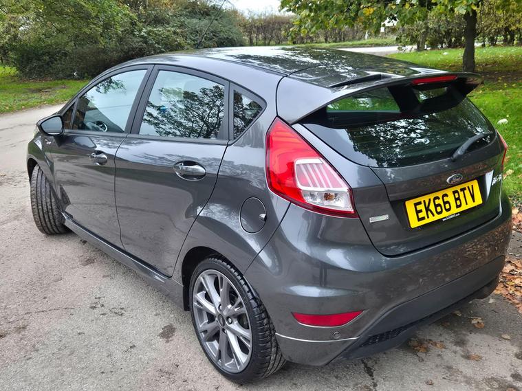 Here at station specialist cars we are pleased to offer this stunning Fiesta ST Line finished in Magnetic grey metallic with contrasting grey coth seats. Great spec including Sat nav, Auto liggts and wipers, City pack, Parking sensors. Having covered only 45000 with a full service history and 2 keys. This 2016 Ford Fiesta ST Line presents an exceptional opportunity with its remarkably low mileage of just 45, 000 miles, a testament to its careful ownership by only two previous keepers. This stylish hatchback is powered by an efficient 1.0L petrol engine, meeting Euro 6 emissions standards, and boasts the desirable ST Line trim. Enhancing your driving experience are features such as the City Pack, which includes rear parking sensors, and the Active City Stop system for added safety. Inside, you'll find Ford DAB radio with Ford SYNC, offering Bluetooth connectivity, manual air conditioning for comfort, and a Ford Navigation System to guide your journeys.This Fiesta ST Line truly stands out from the crowd. Its impressive fuel economy of 63 mpg means fewer stops at the petrol station, and its low CO2 emissions contribute to a more environmentally friendly drive. Furthermore, its brisk acceleration, reaching 0-62mph in just 9.0 seconds, demonstrates a lively performance that belies its economical nature, making it a compelling choice for those seeking both efficiency and enjoyment..