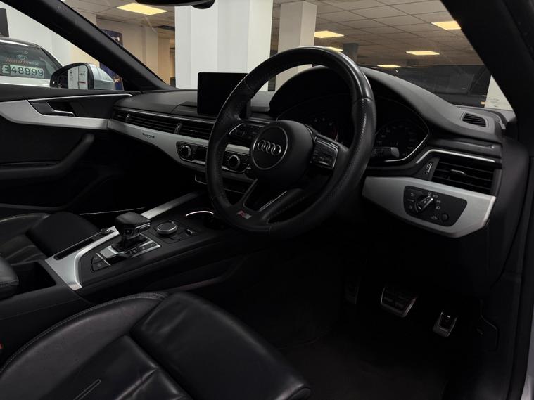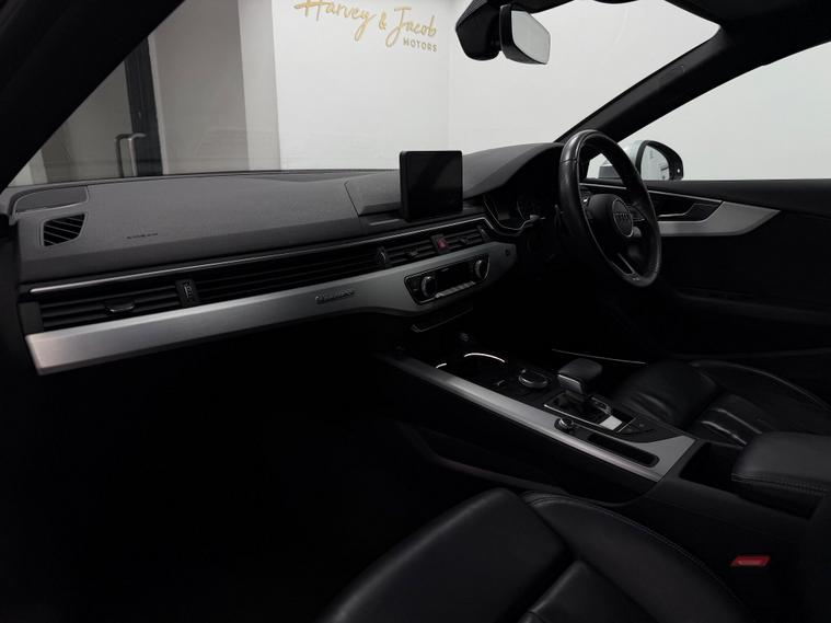This 2019 Audi A5 TFSI S line boasts a clear vehicle history, offering peace of mind alongside its impressive performance. Powered by a 2.0 litre petrol engine and featuring a four wheel drive drivetrain, this Euro 6 compliant model is presented in the sought after S line trim. It comes equipped with the Comfort and Sound Package, which includes keyless entry, a luxury branded sound system, and rear parking assistance with a camera. Further enhancing its driver assistance capabilities is the Parking Assistance Pack Advanced, incorporating Blind Spot Assistance and a 360 degree camera. The vehicle also benefits from a Light and Rain Sensor for automatic headlight activation, LED headlights with dynamic rear indicators, and a Bluetooth interface for seamless connectivity.The Audi A5 TFSI S line truly excels with its dynamic capabilities, accelerating from 0 to 62 miles per hour in a swift 6.0 seconds. This impressive acceleration, combined with its advanced technology and premium features, positions this Audi A5 as a superior choice compared to other vehicles in its class. The inclusion of features like the 360 degree camera and Blind Spot Assistance demonstrates a commitment to both convenience and safety, making every journey more enjoyable and secure. In.