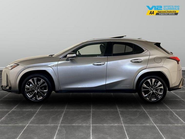 This 2022 Lexus UX 250h F Sport presents an exceptional ownership proposition with its remarkably low mileage of just 16, 080 miles, having been cherished by only one owner since new. This Euro 6 compliant model boasts a responsive 2.0L petrol hybrid engine, offering an efficient and engaging driving experience with a 0-62mph acceleration time of 8.5 seconds. Inside, you'll find the convenience of Apple CarPlay and Android Auto, seamlessly integrating your smartphone for navigation and entertainment. The F Sport trim level enhances the UX with a suite of advanced features designed for comfort and safety. Intelligent parking sensors, both front and rear, make manoeuvring effortless, while the dual zone climate control ensures a pleasant cabin temperature for all occupants. Stay connected on the go with Bluetooth mobile phone connectivity, and drive with confidence thanks to the comprehensive Lexus Safety System Plus, which includes adaptive cruise control. Its low insurance group rating further adds to its appeal, indicating it is a more economical choice compared to similar vehicles. For peace of mind this vehicle has only had 1 registered owner and has completed a multi point AA dealer's website finance is also available.We are open 7 days a week and have more than 1500 cars to choose from.All our Euro 4 Petrol and Euro 6 Diesel vehicles meet the ULEZ standard.Vehicle specification can be found below. From time to time vehicles have manufacturer recalls notified. Please read our recall policy on our website for further information..