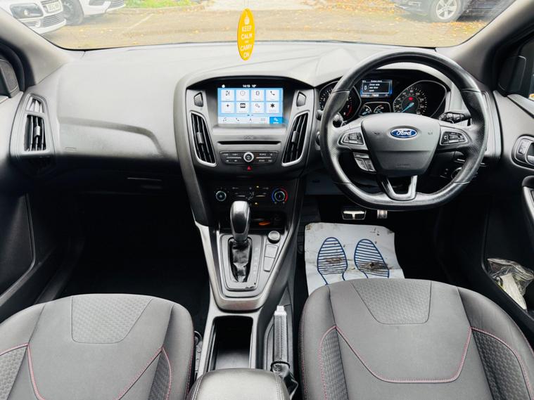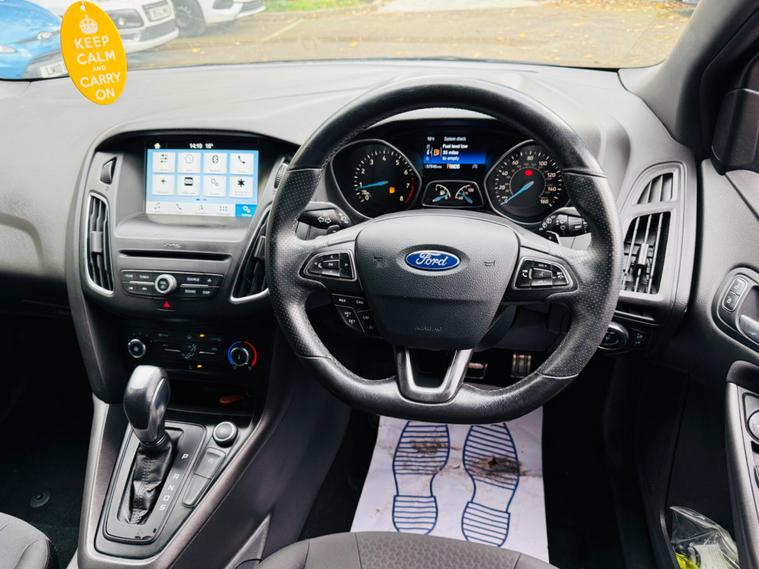 BLACK, FULL SERVICE HISTORY, FINANCE AVAILABLE, NAVIGATION SYSTEM , PARKING SENSORS, SPARE KEY, PRIVACY GLASS, START/STOP, CRUISE CONTROL, ULEZ COMPLIANT, SUPERB DRIVE, VERY ECONOMICAL, ALLOY WHEELS, CLIMATE CONTROL, VERY WELL LOOKED AFTER, VERY CLEAN IN AND OUT.This 2017 Ford Focus ST-Line presents a superb ownership proposition with its full service history and a clear vehicle history check. This 1.0 litre petrol model, registered in 2017, boasts a modest 57646 miles, which is notably low for its age. The ST-Line trim ensures a sporty feel, and you can expect comfort with the inclusion of manual air conditioning.This Focus ST-Line offers excellent running costs, highlighted by an impressive fuel economy of 51 miles per gallon. Its low CO2 emissions and placement within a low insurance group further indicate that this vehicle is more economical to own and run than many others in its class..