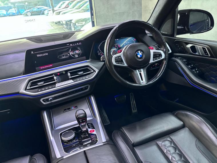 This 2021 BMW X5 M i V8 Competition is a remarkable example of performance and luxury, boasting a powerful 4.4L petrol engine and a sophisticated four wheel drive system. As a Euro 6 compliant vehicle, it meets stringent emission standards. This particular model, in its Competition trim, offers an impressive towing weight of 3000 kg, making it highly capable for various needs. Notable features include the expansive Panorama Glass Roof Sky Lounge with an opening panoramic sunroof, and the Comfort Plus Package which includes heated seats for enhanced comfort. The Luggage Compartment Package and BMW Connected Package Professional, featuring Apple CarPlay, further elevate the driving experience.The M Multifunctional Seats for the driver and front passenger, complete with memory settings, ensure optimal comfort and support. This X5 M truly excels with its dynamic capabilities, achieving a rapid 0-62mph acceleration in just 3.8 seconds, a highlight that sets it apart from many other vehicles in its class. The generous boot space is another key advantage, offering practicality for everyday use and longer journeys. These elements combined demonstrate the superior engineering and thoughtful design that make this BMW X5 M a standout choice..