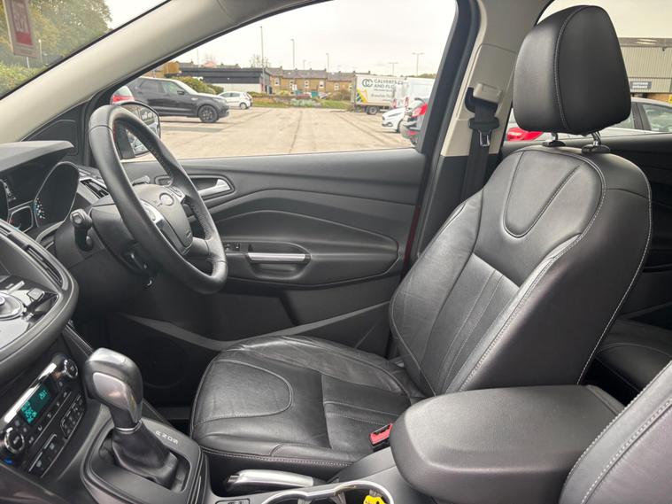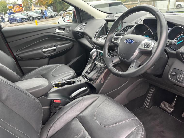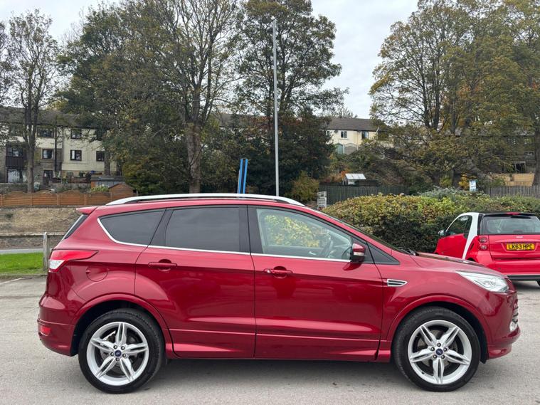WE ARE PLEASED TO OFFER THIS HIGHLY DESIRABLE HIGH SPECIFICATION HIGHLY MAINTAINED RARE LOW MILEAGE ONE OWNER ALL WHEEL DRIVE AUTOMATIC FORD KUGA 2.0 TDCi TITANIUM X SPORT EURO SIX FIVE DOOR + FINISHED IN THE BEST COLOUR COMBINATION OF RUBY RED METALLIC PAINTWORK AND IS COMPLEMENTED WITH A FULL BLACK TORINO LEATHER UPHOLSTERY + ONLY A MERE 39, 111 MILES HAS BEEN COVERED BY ONE OWNER AND IS BACKED WITH AN EXCEPTIONAL SERVICE HISTORY WHICH IS COMPRISED OF EIGHT SERVICES + THE SERVICES HAVE BEEN CARRIED OUT AT 3892 MILES, 8673 MILES, 64197 MILES, 18394 MILES, 22127 MILES, 27902 MILES, 37295 MILES AND 39111 MILES + 12 MONTHS MOT + OUTSTANDING CONDITION THROUGHOUT AND DRIVES SUPERB + 180 BHP MODEL + FULL TITANIUM X SPORT SPECIFICATION WHICH INCLUDES AN ELECTRIC TILT N SLIDE GLASS SUNROOF / SATELLITE NAVIGATION / SYNC 3 PACKAGE / CLIMATE PACK WITH HEATED SCREENS AND HEATED FRONT SEATS / PARK ASSIST WITH FRONT AND REAR PARKING SENSORS WITH REVERSING CAMERA / FULL ELECTRIC PACK WITH POWER ADJUSTABLE DRIVERS AND POWER TAILGATE / 19'' FIVE SPOKE ALLOY WHEELS / PRIVACY GLASS / CRUISE CONTROL / MULTI FUNCTION STEERING WHEEL / DETACHABLE TOW PACK PLUS MUCH MORE + HANDBOOK PACK + STAMPED SERVICE BOOK WITH INVOICES AND RECEIPTS + 2 X KEYS + ANY TRIAL OR INSPECTION IS WELCOMED + HPI CLEAR WITH CERTIFICATE + SIX MONTHS NATIONWIDE WARRANTY IS INCLUDED + VIEWING IS ESSENTIAL TO APPRECIATE THIS TRULY CHERISHED RARE AND UNIQUE EXAMPLE OF THIS POPULAR SUV. We have been established in Baildon for over 20 years. All our vehicles are fully inspected, prepared and valeted.  We are finance specialists. Part exchange is welcome. All major credit and debits accepted. Open 7 days. Our postcode is BD177EX..