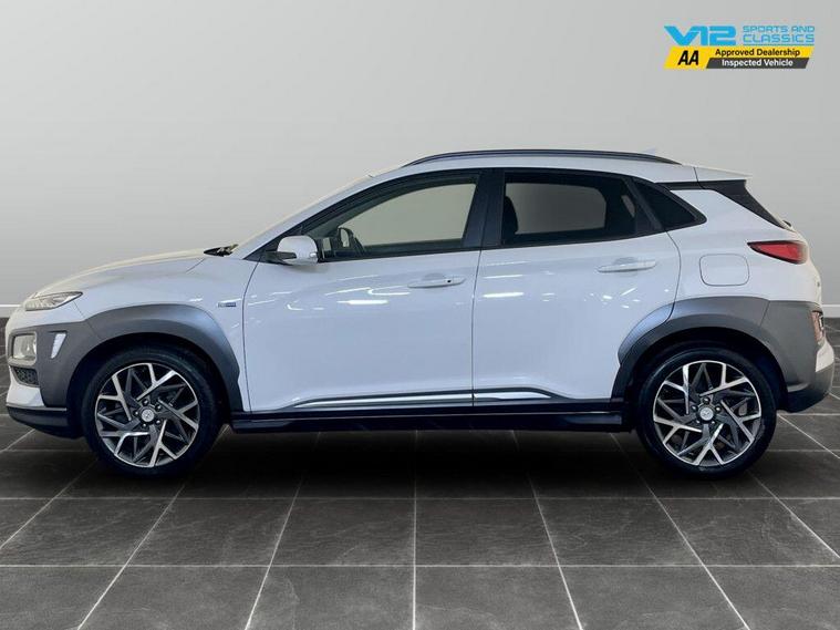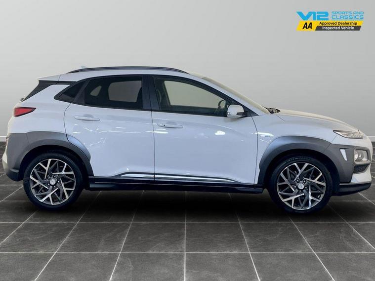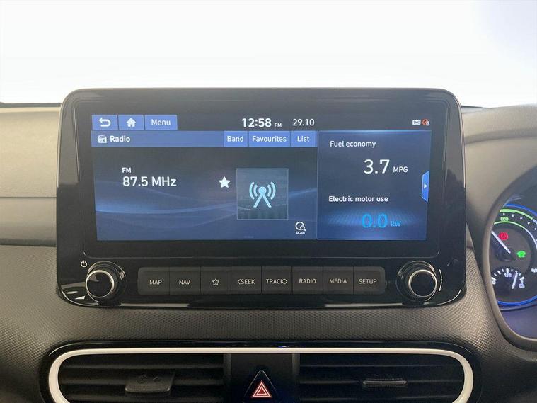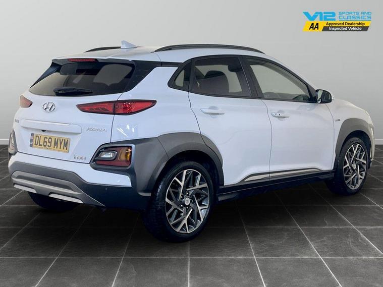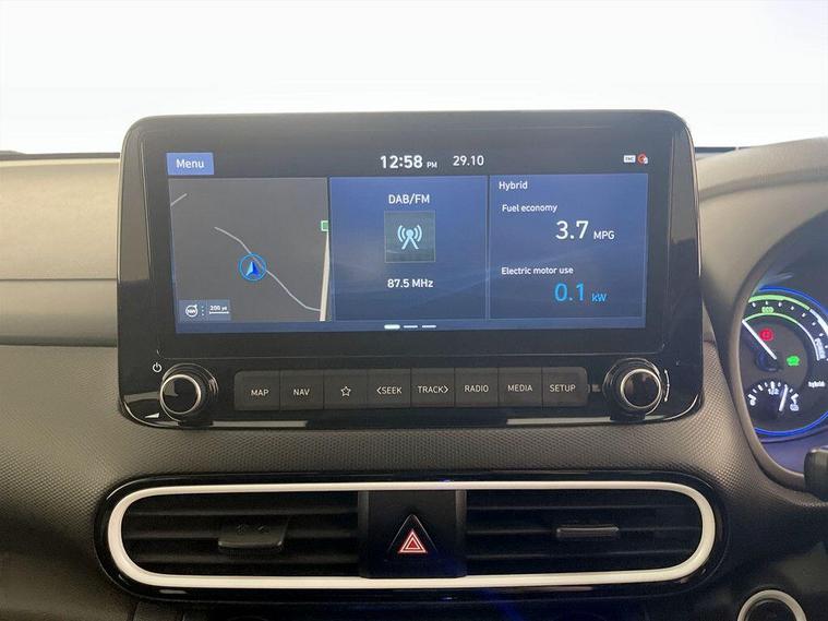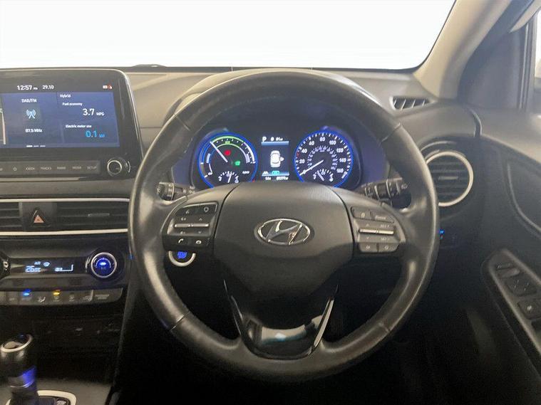 This 2019 Hyundai KONA h GDi Premium SE offers an exceptional blend of efficiency and advanced technology. As a Euro 6 compliant model, it showcases a 1.6 litre petrol hybrid engine, promising a remarkable fuel economy of 52 miles per gallon. The Premium SE trim level ensures a sophisticated driving experience, enhanced by features such as automatic headlights that activate with the dusk sensor, and a convenient wireless phone charging pad. Safety is paramount with the inclusion of a Blind Spot Detection System, while the Smart Key allows for keyless entry and engine start-stop button operation. For added comfort, this KONA boasts a heated steering wheel, making it a truly well equipped vehicle. The Hyundai KONA h GDi Premium SE stands out with its low insurance group, making it an economical choice for many drivers. Its low CO2 emissions further contribute to its appeal as an environmentally conscious option. For peace of mind this vehicle has completed a multi point AA inspection. Competitive finance is also available.We are open 7 days a week and have more than 1500 cars to choose from.All our Euro 4 Petrol and Euro 6 Diesel vehicles meet the ULEZ standard.Vehicle specification can be found below. From time to time vehicles have manufacturer recalls notified. Please read our recall policy on our website for further information..