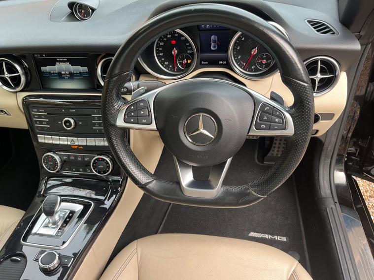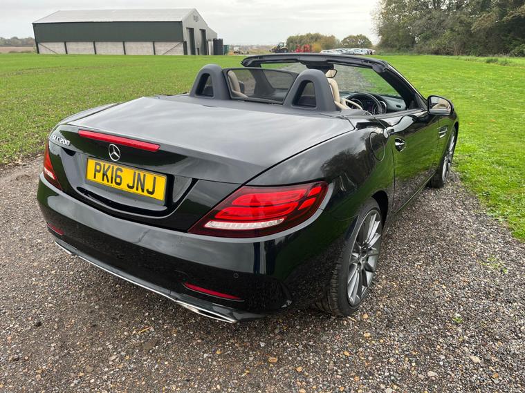 Boasting a full service history and a clear vehicle history check, this 2016 Mercedes-Benz SLC200 AMG Line represents a well maintained example. This stylish convertible features a 2.0L petrol engine and meets Euro 6 emissions standards. You can drive with confidence knowing it comes with a 3 month warranty and a 12 month MOT provided on purchase. The last service was completed on 2025-01-15 at 49090 miles. Notable features include the Panoramic glass roof, Memory Package for the seats, elegant High Gloss Black Ash Wood trim, and the advanced LED Intelligent Light System with Adaptive High beam Assist Plus. Convenience is enhanced with Keyless Go, allowing for keyless entry, and the Lane Tracking Package which includes Blind Spot Assistance. This car has a massive specification, just had a big service along with an automatic gearbox service.Please call 01245482565 for further details.Appointment onlyThis Mercedes-Benz SLC200 AMG Line offers an impressive fuel economy of 48 mpg, highlighting its efficiency compared to similar vehicles. Its low CO2 emissions further underscore its economical and environmentally conscious design. This combination of performance, advanced technology, and excellent fuel efficiency makes it a compelling choice for those seeking a premium driving experience..