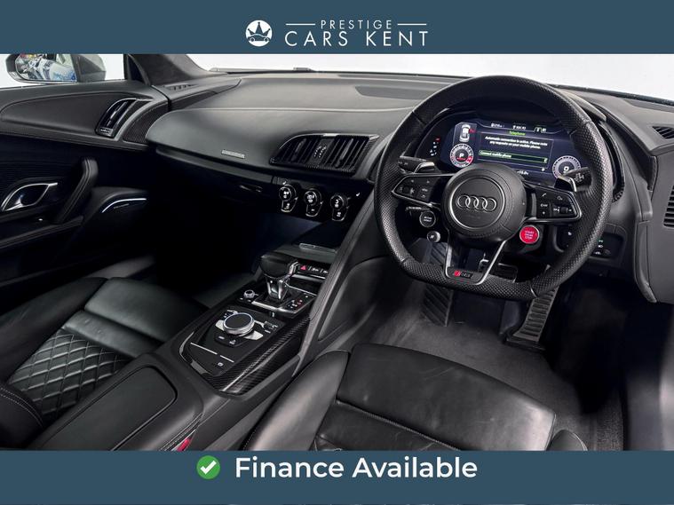 ? Audi R8 5.2 FSI V10 Performance Coupe 2dr Petrol S Tronic quattro Euro 6 ?The Audi R8 V10 Performance is the ultimate expression of Audi’s motorsport DNA — a breathtaking supercar that blends precision engineering, everyday usability, and a spine-tingling naturally aspirated soundtrack. Finished to perfection, this example showcases both power and elegance in equal measure.✨ Features We Love:? Bang & Olufsen Sound SystemA premium 13-speaker audio system that delivers studio-quality sound even at supercar speeds.? Ceramic Brakes with Red Brake CalipersProvide exceptional stopping power and fade resistance, while adding a striking visual statement.?️ Parking System Plus – Front and Rear SensorsOffers seamless assistance when manoeuvring, ensuring confidence in every situation.⚙️ Dynamic SteeringAdjusts responsiveness based on speed and driving style for sharper cornering and precise control.? Storage PackageAdds practical convenience with smart interior storage options for your essentials.? Alcantara Headlining with Diamond Stitch DesignEnhances the cabin’s luxury appeal with a beautifully finished, race-inspired texture.? Extended Fine Nappa Leather PackageWraps the interior in exquisite craftsmanship and comfort, reflecting Audi’s attention to detail.The R8 V10 Performance isn’t just a car — it’s an experience. A symphony of engineering excellence, delivering quattro all-wheel-drive grip, 620 PS of pure power, and a 7-speed S Tronic gearbox that makes every drive unforgettable.? 01689242905? Submit an enquiry to discuss over email.At Prestige Cars Kent, every vehicle undergoes a 175-point inspection, includes a 90-day warranty, and comes with nationwide delivery for total peace of mind and quality assurance.⭐ Admin fee applies. Please confirm all specifications, as they are autogenerated. ⭐.