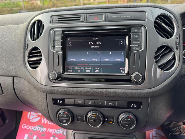 Boasting exceptionally low mileage for its age, this 2016 Volkswagen Tiguan TDI Match Edition presents a superb ownership proposition. Powered by a robust 2.0 litre diesel engine and featuring Four Wheel Drive, this Euro 6 compliant model is ready for any journey. With a clear vehicle history check and a full service history, including its last service on 2025-07-08 at 50810 miles, this Tiguan has been meticulously maintained. It benefits from a 6 month warranty for your peace of mind and has had only one owner from new. Notable features include dusk sensing automatic headlights, Bluetooth for telephone calls and audio streaming, keyless entry for effortless access, and front parking sensors to aid manoeuvring.This Volkswagen Tiguan stands out with its very low mileage of just 54000 miles, indicating less wear and tear compared to other vehicles of the same age. The low insurance group further enhances its appeal, suggesting lower running costs. With a substantial towing weight of 2500 kg, this Tiguan is also a practical choice for those who need to tow. The combination of its comprehensive provenance, desirable features, and economical aspects makes this Tiguan a compelling option..