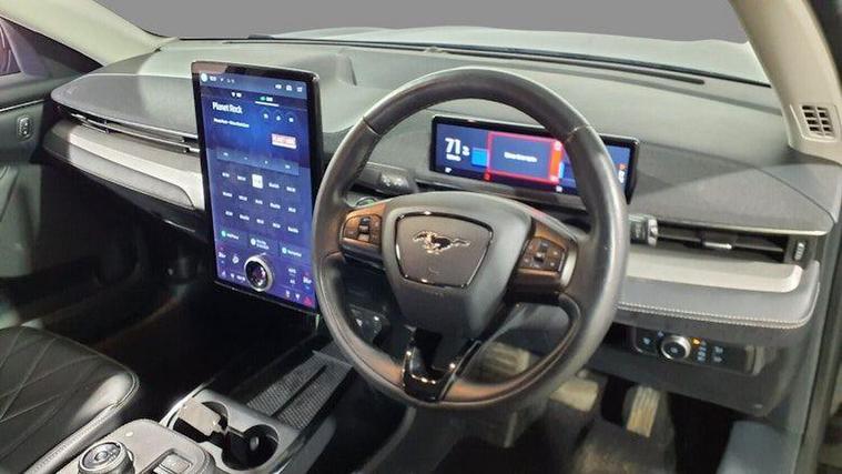 This 2021 Ford Mustang Mach E Standard Range boasts a clear vehicle history and has had only one owner from new. This electric vehicle features a 76 kWh battery, offering a maximum range of 273 miles when new. Charging at home with a 7kW charger takes approximately 11 hours and 24 minutes, while rapid public charging can take the battery from empty to 80% in just 43 minutes. Notable features include a wireless device charging pad, Blind Spot Information System with Cross Traffic Alert, Adaptive Cruise Control with Stop and Go and Lane Centering, heated front seats, and front and rear parking sensors.The Mustang Mach E provides a refined driving experience, enhanced by its advanced technology and comfort features. The inclusion of Adaptive Cruise Control and Blind Spot Information System demonstrates a higher level of driver assistance compared to many other vehicles in its class. The heated seats ensure comfort in all conditions, and the parking sensors make manoeuvring straightforward. This well maintained, single owner electric Ford represents a smart choice for those seeking a modern and capable vehicle..