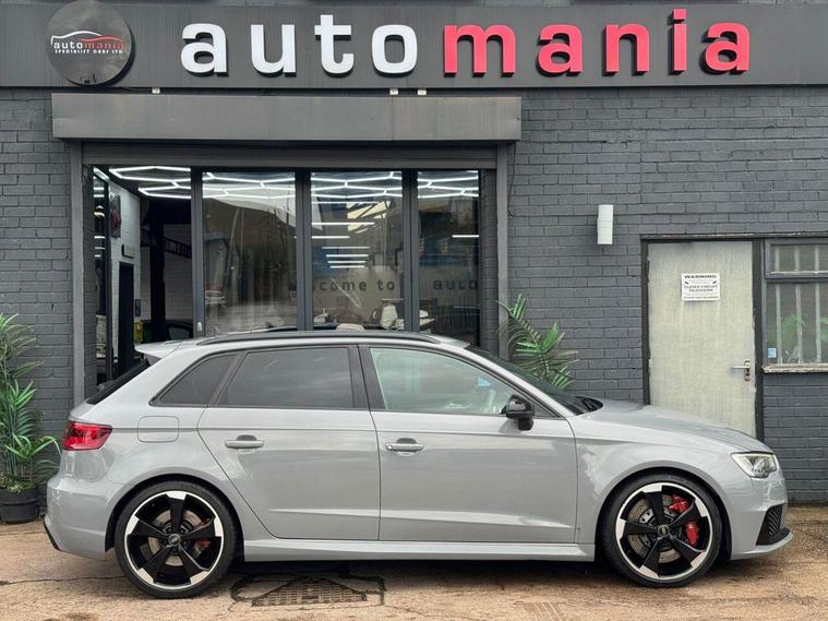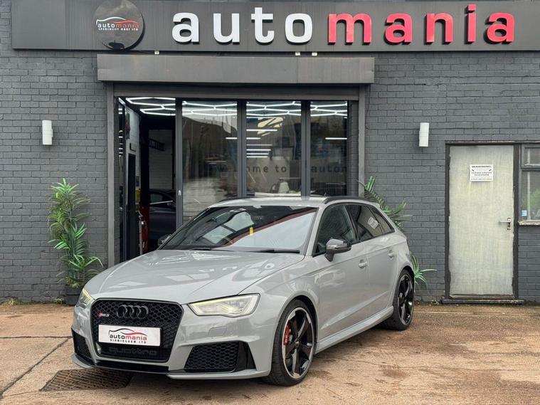 2016 Audi RS3 finished in Metallic grey with Low Miles. This car is a well Equipped Great City Car. Includes Interior Features such as; Adjustable Head Restraints, Air Conditioning, Bottle Holders - Front Centre Console and Door, Bottle Holders - Rear Door, Door Courtesy Lights, Driver and Passenger Sun Visor with Ticket Holder, Driver Seat Height Adjustment, Front Door Pockets, Height Adjustable Steering Column, Luggage Compartment Light, Rear Door Pockets, Split Folding Rear Seats - 60-40, Sun Visors with Vanity Mirrors Exterior Features, Allow wheels, Door Handles - Body Coloured, Door Mirrors - Body Coloured, Electric Adjustment and Heated Door Mirrors, Electric Windows - Front and Rear, One Touch Down Drivers Window Control, Rear Spoiler with Integrated Brake Light, Tyre Repair Kit Other Features and Key Information 12V Power Outlet - Front x2, Cruise Control with Speed Limiter, Daytime Running Lights, Power Assisted Steering, RDS Radio-CD Player with MP3 Compatibility, Speakers x2, Trip Computer, Tyre Pressure Monitoring System - TPMS, USB and AUX Connections, ABS - Anti-Lock Brake System, Airbags - Driver, Airbags - Front Passenger, Airbags - Front Side, Airbags - Full Length Curtain, BAS - Brake Assist System, Childproof Rear Door Locks, ESP - Electronic Stability Programme, Front and Rear Seatbelt Reminder, Front Passenger Airbag De-Activation Switch, Immobiliser, ISOFIX Child Seat Anchorage Points - Rear - Outer Rear, Remote Central Locking. *NO HIDDEN ADMIN FEES* 1 YEAR AA BREAKDWON COVER* MINIMUM 3MM TYRE DEPTH, *NO EXTRA CHARGE FOR OUR 3 MONTHS WARRANTY *NO FUEL CHARGES *NO SURCHARGE FOR CREDIT CARDS We supply our vehicles with a Minimum 9 MONTHS MOT Test. If the vehicle requires a service in the next 3 months or 3000 MILES (WHICHEVER COMES SOONEST) we will service the vehicle before delivery. We are fully authorised & Regulated by the Financial Conduct Authority (FCA) and can offer a wide range of finance products and advice. Please visit our website at dealer's website to find out more about us and detailed directions to our site also view our full range of stock. With Over 65 similar cars always available..