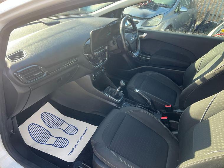 This 2018 Ford Fiesta Zetec boasts a full service history, offering you peace of mind alongside its impressive features. This T Zetec model is equipped with a 1.0L petrol engine and meets Euro 6 emissions standards. For added convenience, it includes a detachable towbar coupling, manual air conditioning, and automatic headlights. The Ford DAB radio with Ford SYNC3 is compatible with both Apple CarPlay and Android Auto, keeping you connected on the go. The NCAP Pack further enhances safety with features like automatic headlights.PLEASE ASK ABOUT OUR WET BELT POLICY.Experience excellent efficiency with this Fiesta, achieving a remarkable 60 mpg, which is a highlight indicating its superior fuel economy compared to similar vehicles. Its low CO2 emissions also contribute to its economical running costs. Furthermore, its acceleration from 0-62mph in just 10.6 seconds demonstrates a responsive driving experience. This vehicle comes with a 3 month warranty for your assurance..