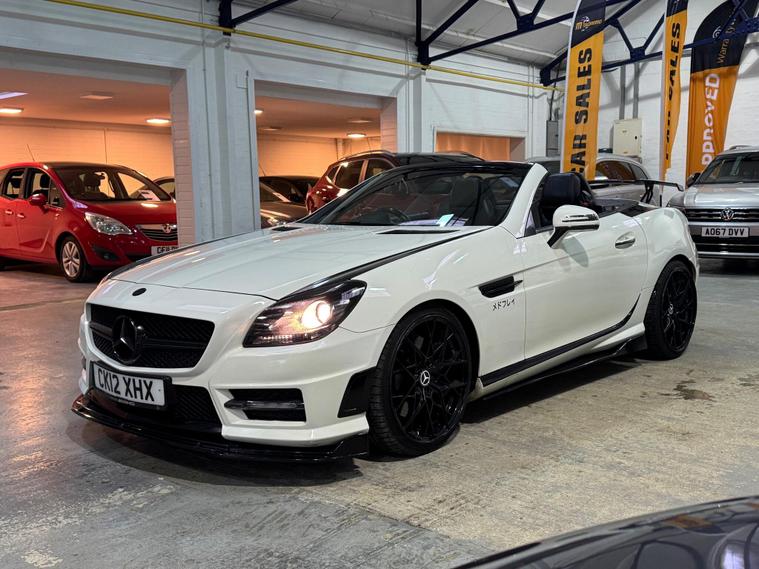 This 2012 Mercedes Benz SLK200 AMG Sport offers a compelling blend of performance and style. As an AMG Sport model, it benefits from a sporty aesthetic and enhanced handling, powered by a responsive 1.8 litre petrol engine. This particular SLK is equipped with essential features for modern driving, including air conditioning to keep you comfortable in all conditions, and a Bluetooth interface for seamless hands free telephone calls. The Headlamp Assist automatically activates the headlights, providing added convenience and safety.With a highlight fuel economy of 44 miles per gallon, this SLK200 AMG Sport demonstrates efficiency that sets it apart from many other vehicles in its class. Furthermore, its low CO2 emissions contribute to a more environmentally conscious driving experience. This combination of economical running costs and the prestige of the Mercedes Benz brand makes this SLK a desirable choice..