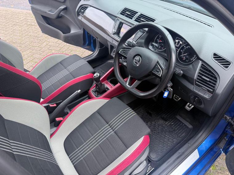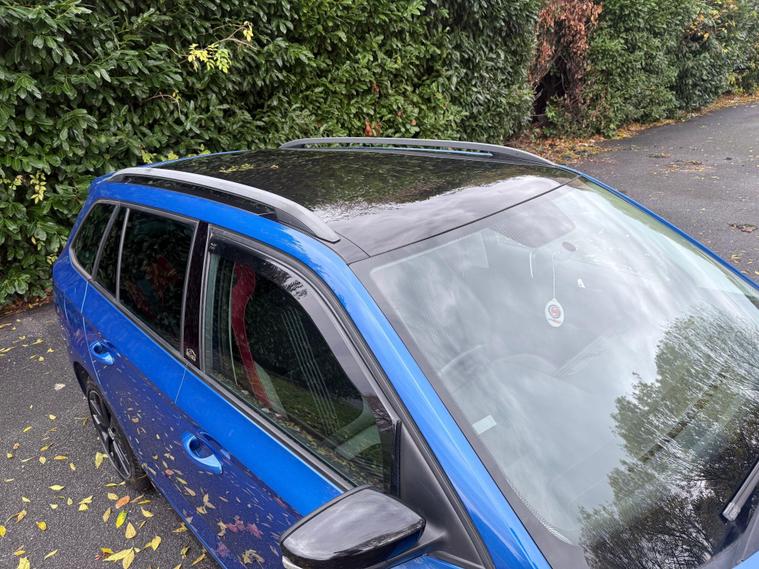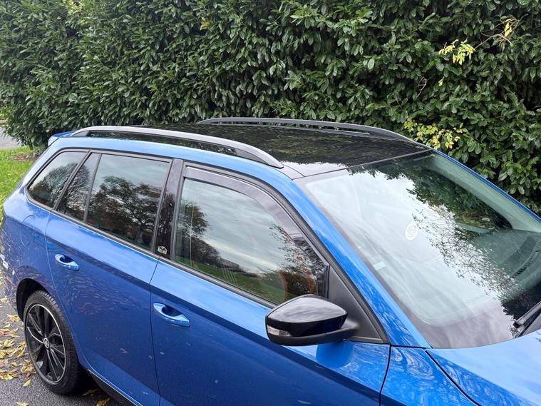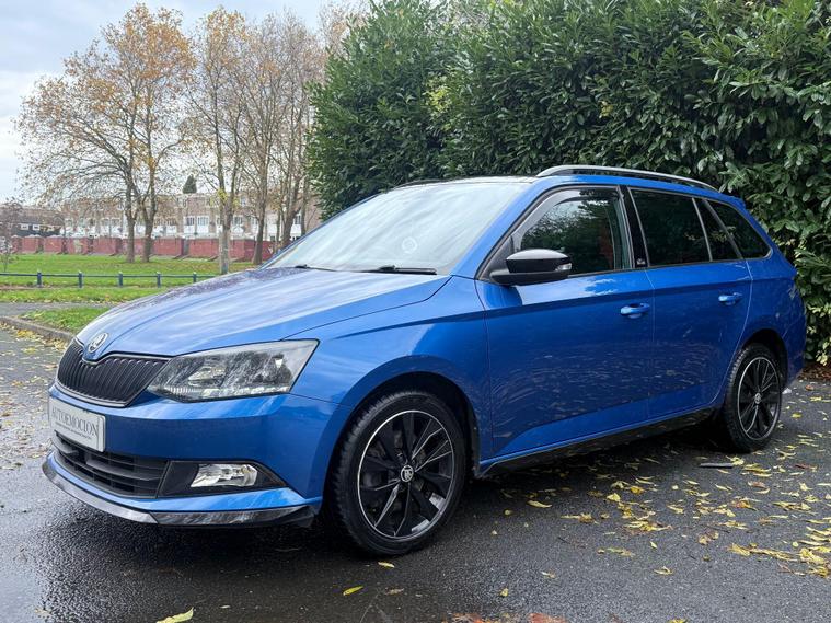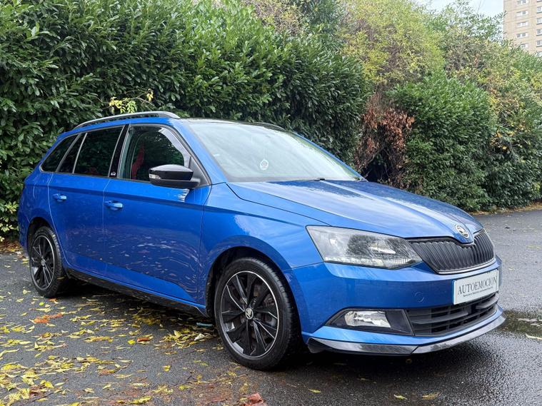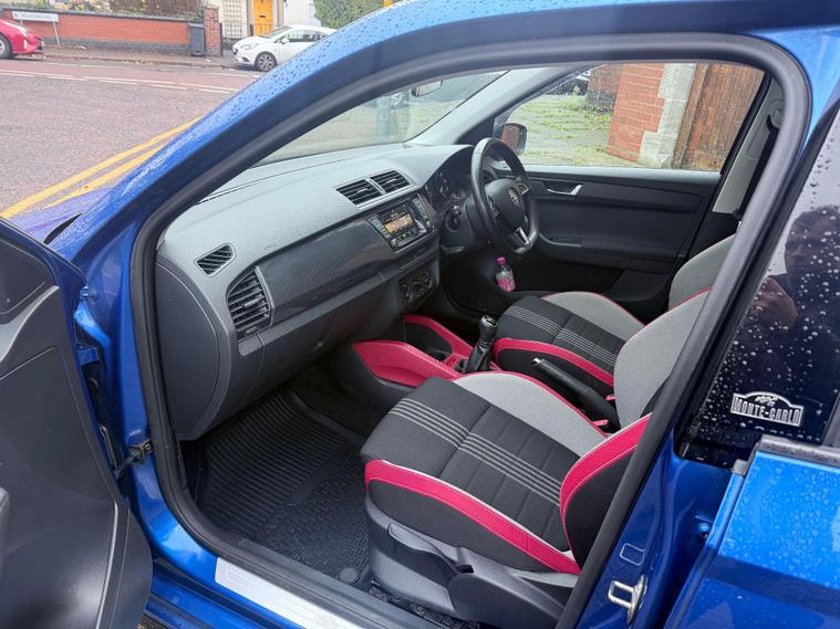 Stunning Skoda Fabia Monte Carlo estate in flagship race blue metallic paint with contrasting black monte carlo trims, This car looks fantastic and being the sporty monte carlo model is packed with equipment including sports bucket seats, panoramic glass roof, led daytime running lights, 16'' gloss black alloy wheels, flat bottom perforated steering wheel with red stitching, carbon fibre interior trim, privacy glass, multifunction trip computeer, DAB radio, apple carplay & android auto, speed limiter, roof rails. Powered by the 1.2 TSi petrol engine this car is easy to drive and has plenty of power, annual road tax is only £20. Condition is excellent all round, drives great, genuine skoda rubber mats and boot liner, 2 keys, service records and manuals are present with the car, This car has just arrived and is currently in preparation consisting of a full service, new cambelt kit and a bodywork & interior detail along with a full 12 months MOT upon sale..