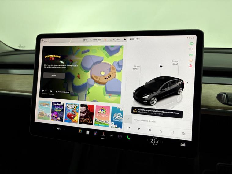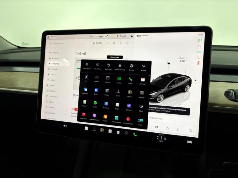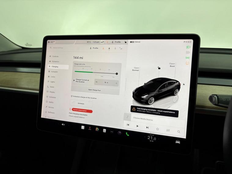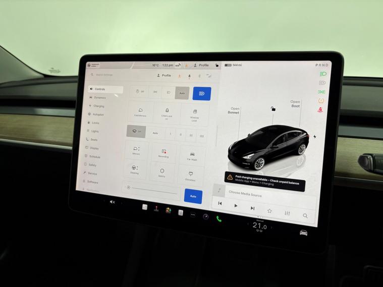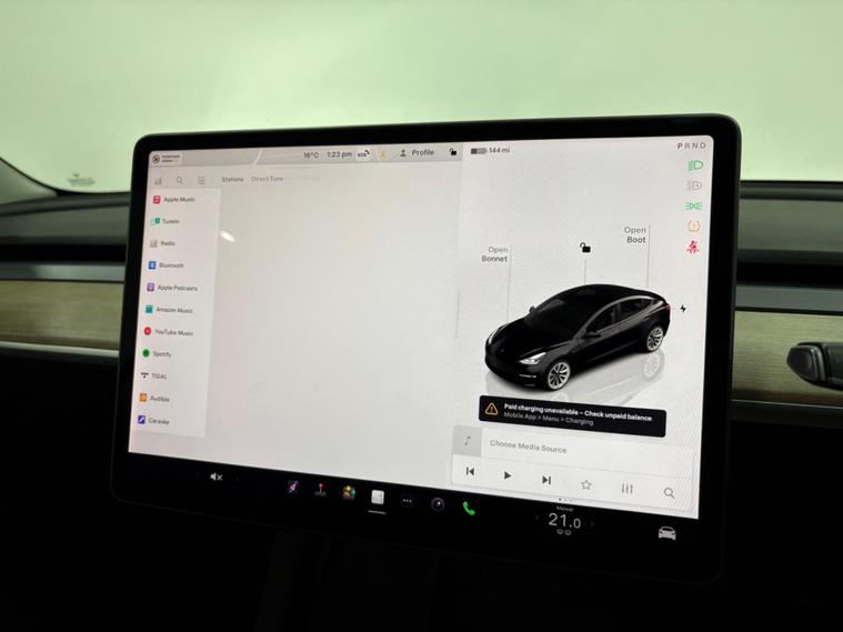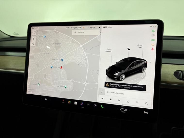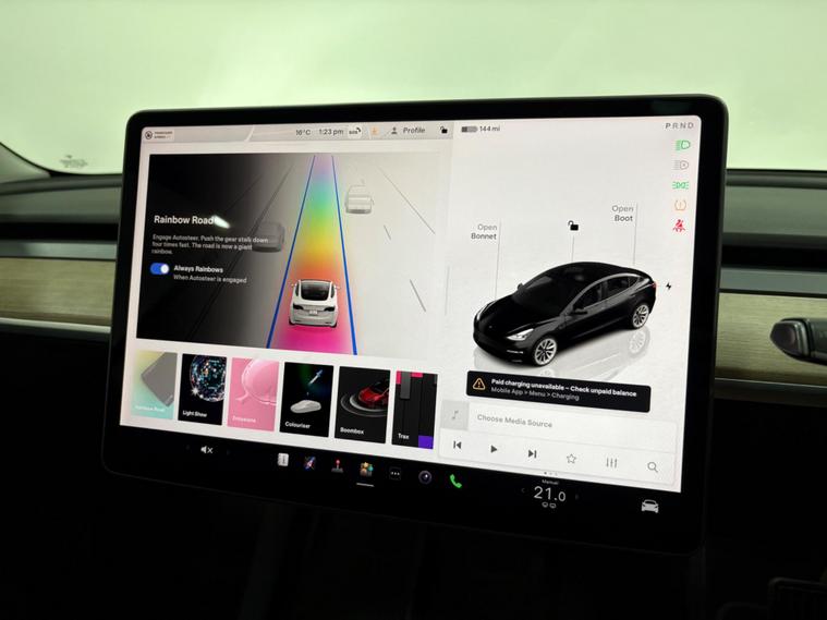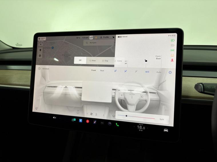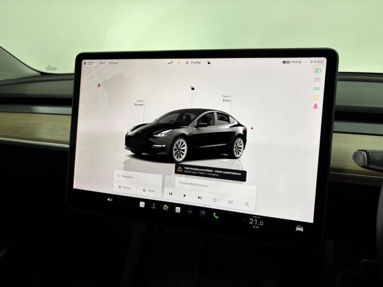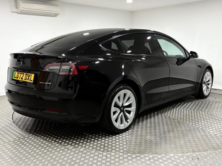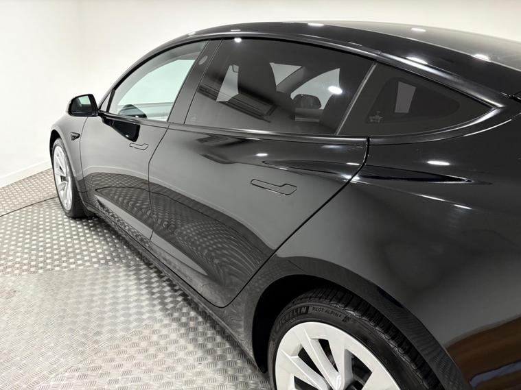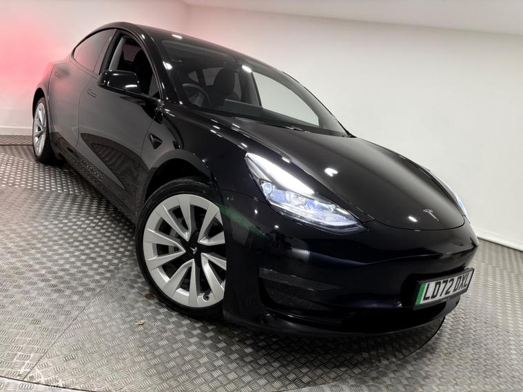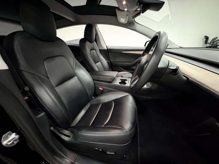 This Tesla Model 3 Long Range is a superb example, having had only one owner since new. Finished in black with black leather interior and has MOT until September 2026. This electric vehicle boasts a substantial 78 kWh battery, ensuring fewer stops on longer journeys. Its Four Wheel Drive drivetrain provides confident handling in various conditions. For convenience, it features keyless go with keyless entry, allowing effortless access. The 19 inch silver sports alloy wheels add a touch of style, while LED headlights illuminate your path. Parking is made simpler with the park assist camera, and you can maintain a comfortable cabin temperature thanks to the 2 zone climate control.The exceptional range of 389 miles highlights how this Model 3 stands out from many other electric cars, offering greater freedom and flexibility for your travels. Furthermore, the large boot space provides ample room for luggage, shopping, or equipment, making it a practical choice for everyday use and adventures alike. Charging is also efficient, with a full charge at home taking approximately 12 hours on a 7kW charger, and a rapid public charge from empty to 80% achievable in just 26 minutes..
