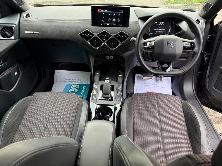 This 2022 DS 3 CROSSBACK E-TENSE Performance Line is a superb example, boasting a full dealership service history and having had only one owner from new. This electric model features a 50 kWh battery offering a maximum range of 232 miles when new. Charging is convenient, with a full charge at home taking approximately 7 hours and 30 minutes using a 7kW charger, while rapid public charging can take you from empty to 80% in just 30 minutes.The Performance Line trim enhances the driving experience with features like Mirror Screen compatibility for Android Auto and Apple CarPlay, allowing seamless integration of your smartphone. Parking is made easier with rear parking sensors, and you can enjoy wireless connectivity through Bluetooth for handsfree calls and media streaming. Comfort is assured with automatic air conditioning, and the headlights automatically adjust to lighting conditions. These elements combine to offer a refined and technologically advanced ownership experience..