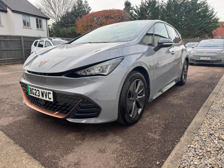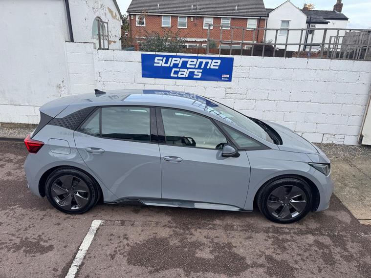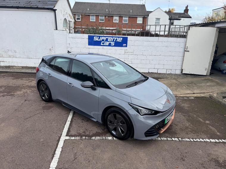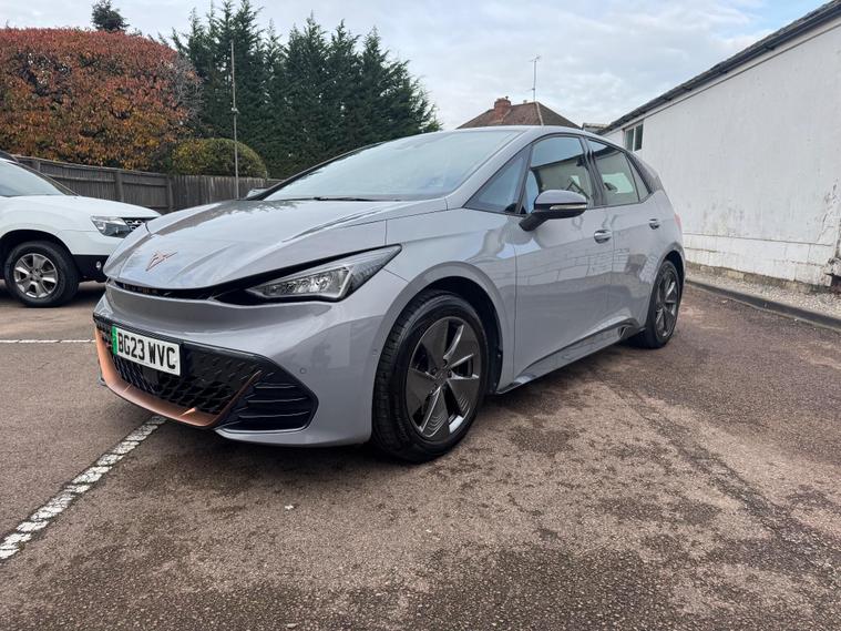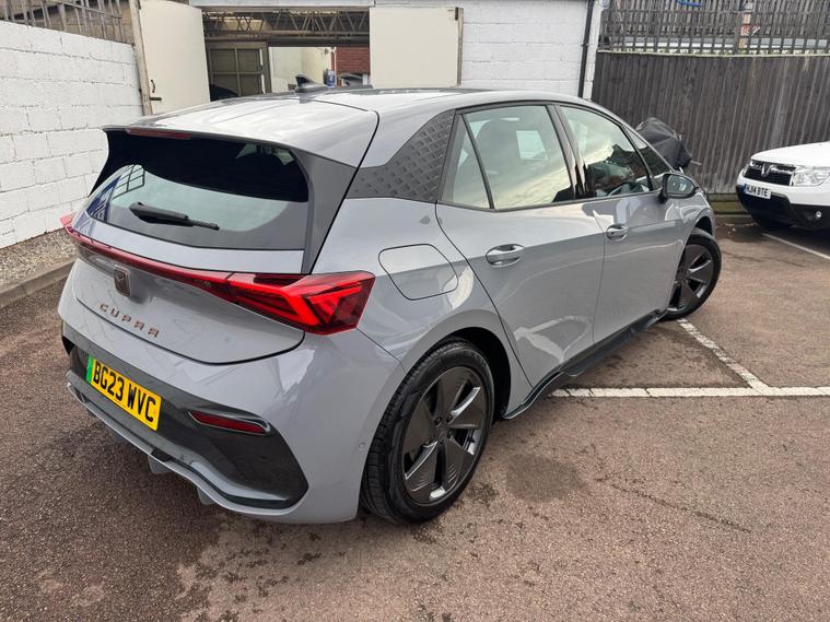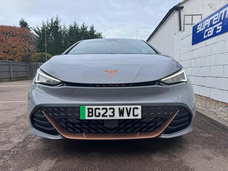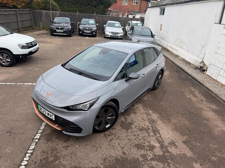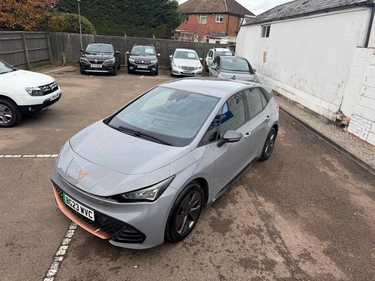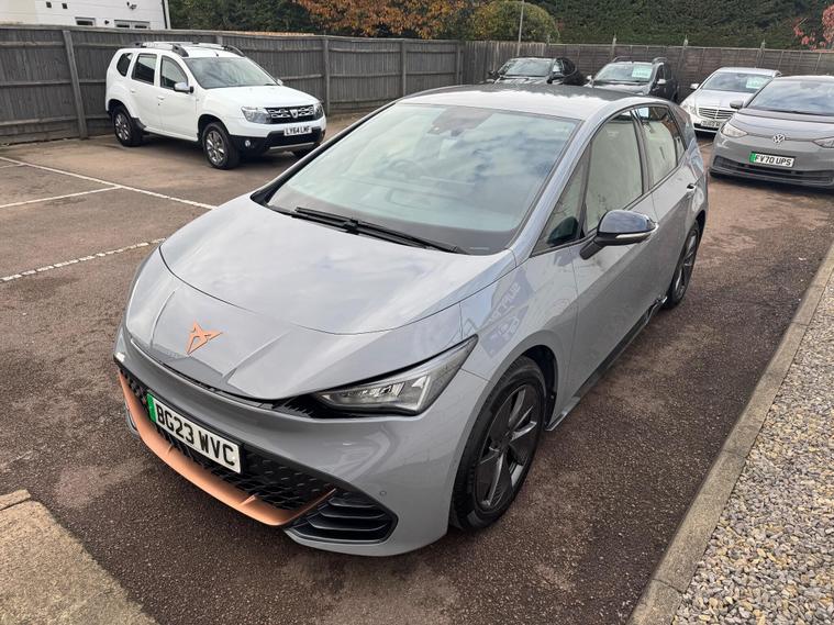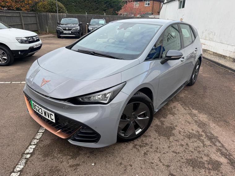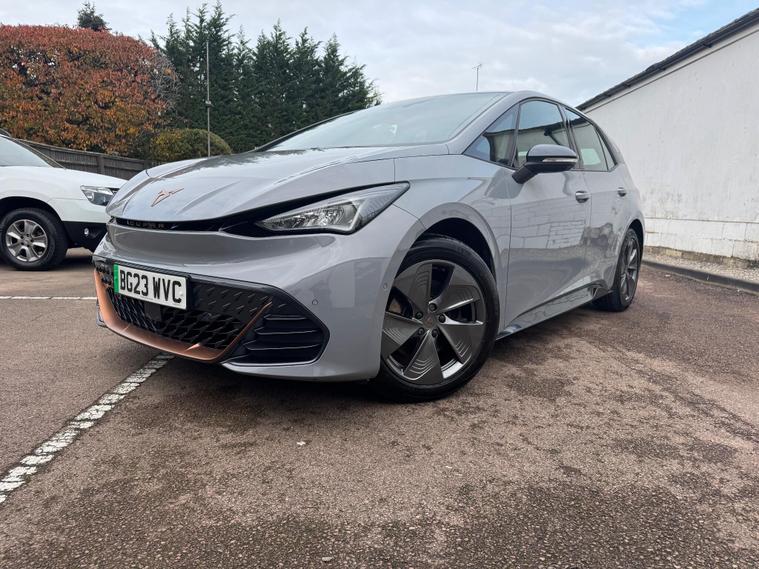 STILL UNDER MANUFACTURES WARRANTY !THIS 2023 CUPRA Born V1 is a superb example, having had only one owner since new. This electric hatchback offers a compelling blend of performance and practicality, boasting a 62 kWh battery that provides a maximum range of 264 miles. For convenience, it can be fully charged at home using a 7kW charger in approximately 9 hours and 30 minutes, or achieve an 80% charge from empty in just 37 minutes at a compatible public charging station. The Born V1 comes equipped with advanced features such as Park Assist with front and rear sensors, Bluetooth connectivity, and adaptive cruise control as part of the Pilot M system, which also includes a rear parking camera. Comfort is assured with Climatronic dual-zone air conditioning, and visibility is enhanced by full LED headlights featuring Welcome Home and Adverse Weather functions.The CUPRA Born V1 stands out with its impressive acceleration, reaching 0-62mph in a swift 7.3 seconds, demonstrating its dynamic capabilities. This performance, combined with its substantial 264 mile electric range, positions it favourably against other vehicles in its class. Furthermore, the generous boot space ensures that practicality is not compromised, making it an ideal choice for everyday use and longer journeys alike.BATTERY HEATH AT 91.7%.