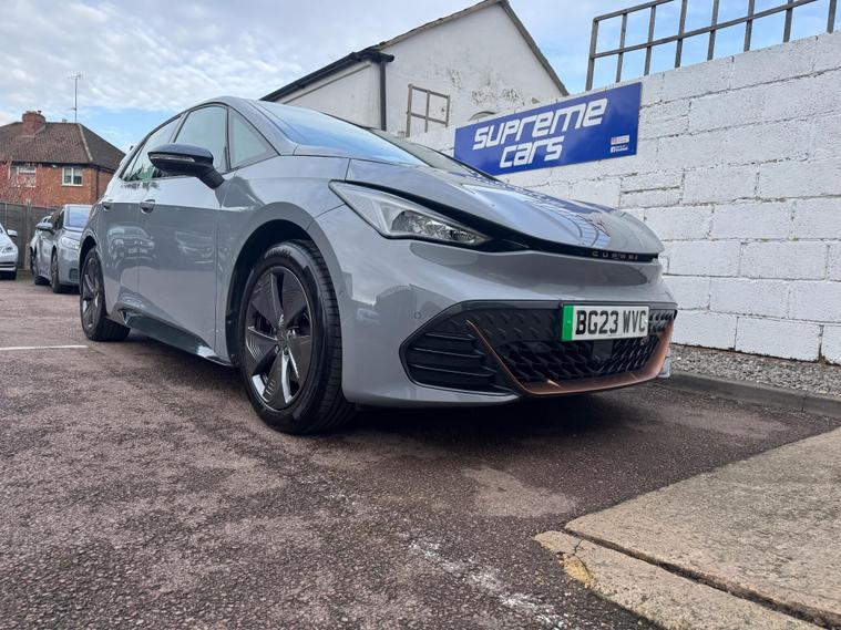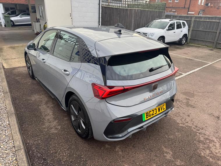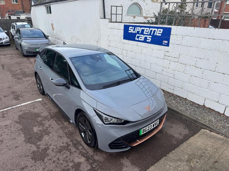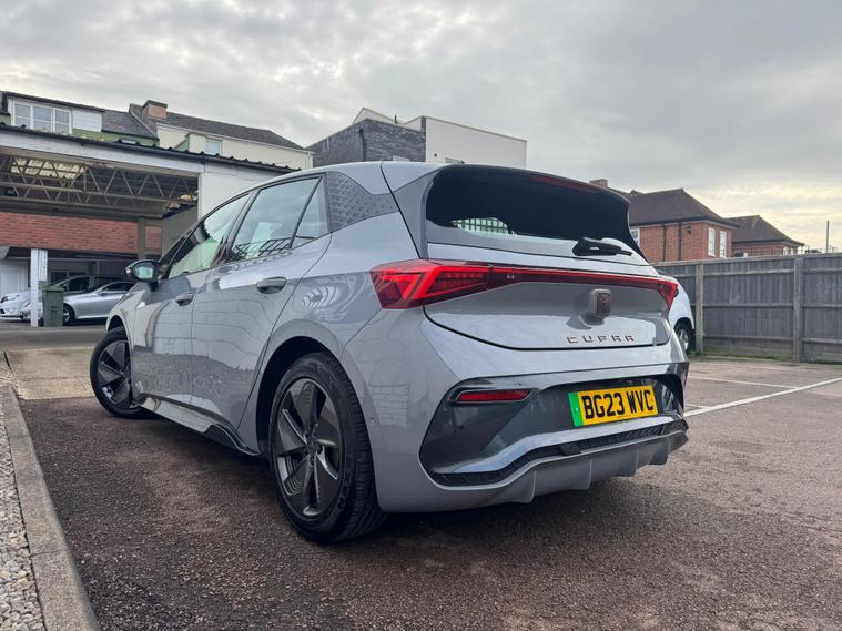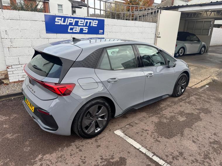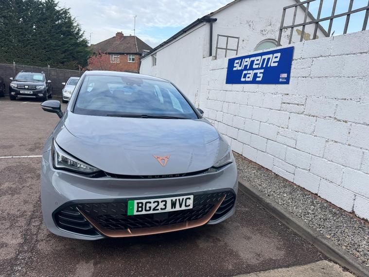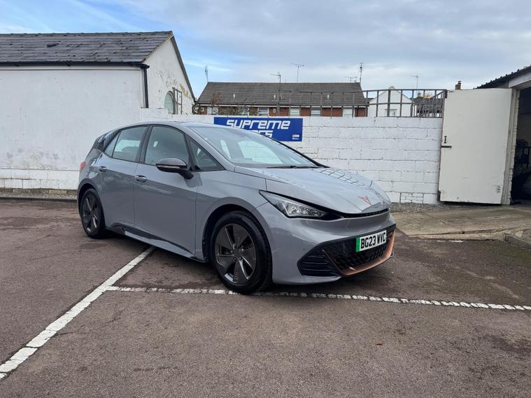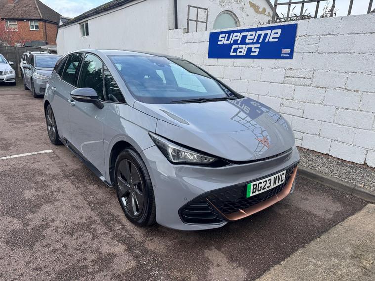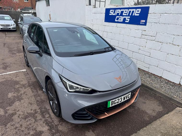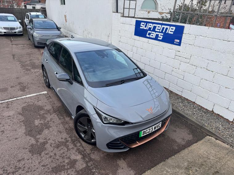 STILL UNDER MANUFACTURES WARRANTY !THIS 2023 CUPRA Born V1 is a superb example, having had only one owner since new. This electric hatchback offers a compelling blend of performance and practicality, boasting a 62 kWh battery that provides a maximum range of 264 miles. For convenience, it can be fully charged at home using a 7kW charger in approximately 9 hours and 30 minutes, or achieve an 80% charge from empty in just 37 minutes at a compatible public charging station. The Born V1 comes equipped with advanced features such as Park Assist with front and rear sensors, Bluetooth connectivity, and adaptive cruise control as part of the Pilot M system, which also includes a rear parking camera. Comfort is assured with Climatronic dual-zone air conditioning, and visibility is enhanced by full LED headlights featuring Welcome Home and Adverse Weather functions.The CUPRA Born V1 stands out with its impressive acceleration, reaching 0-62mph in a swift 7.3 seconds, demonstrating its dynamic capabilities. This performance, combined with its substantial 264 mile electric range, positions it favourably against other vehicles in its class. Furthermore, the generous boot space ensures that practicality is not compromised, making it an ideal choice for everyday use and longer journeys alike.BATTERY HEATH AT 91.7%.