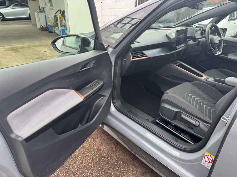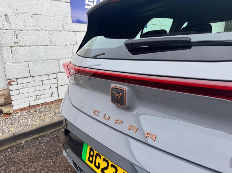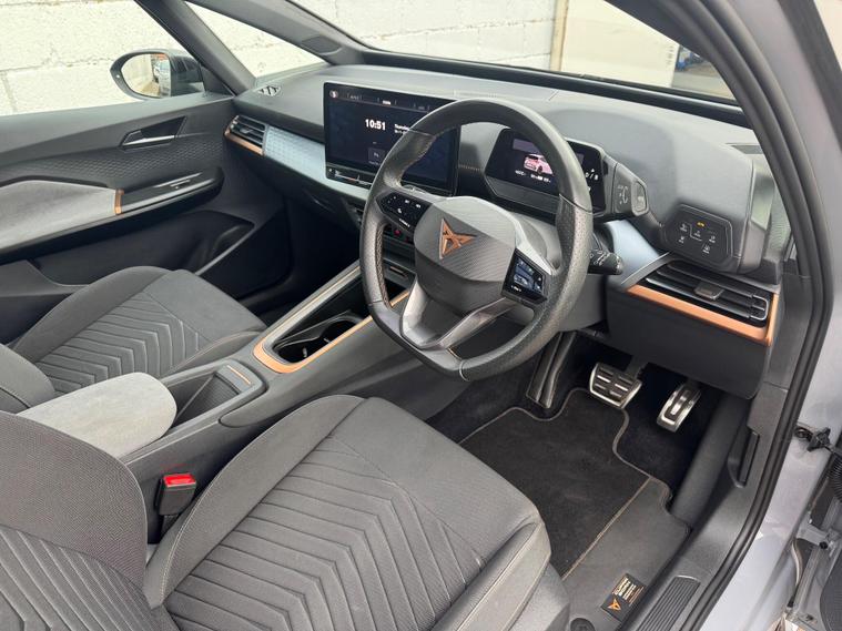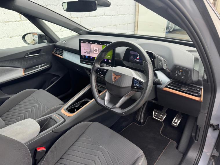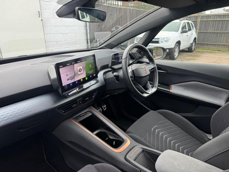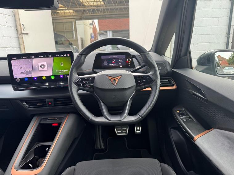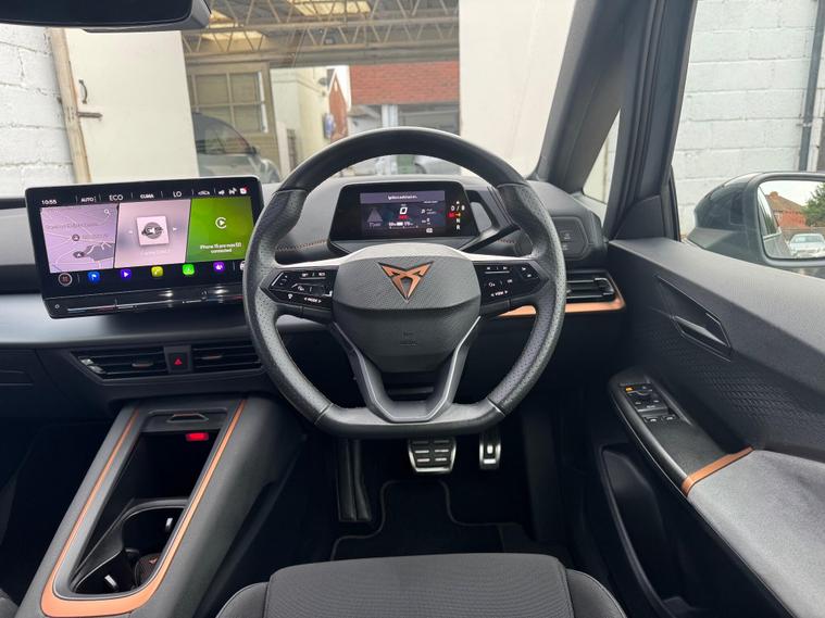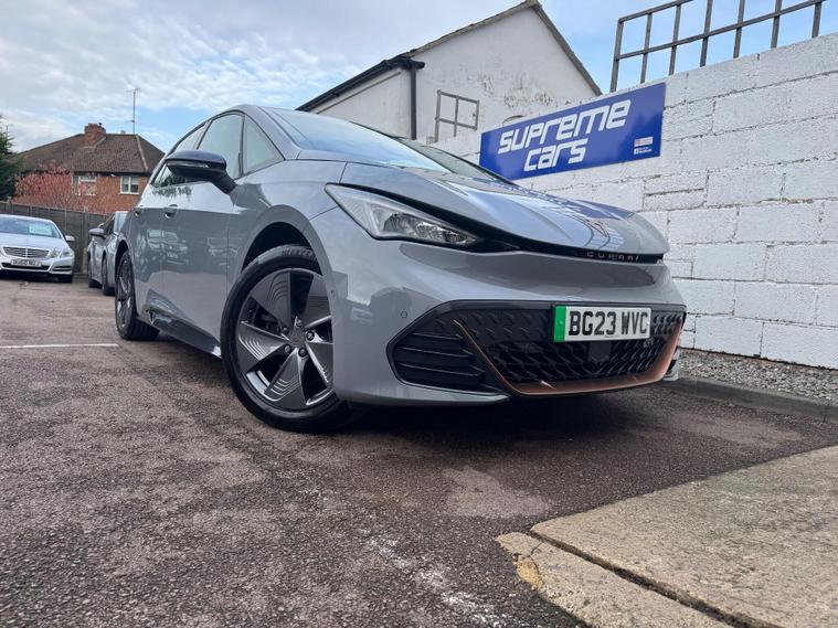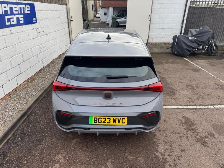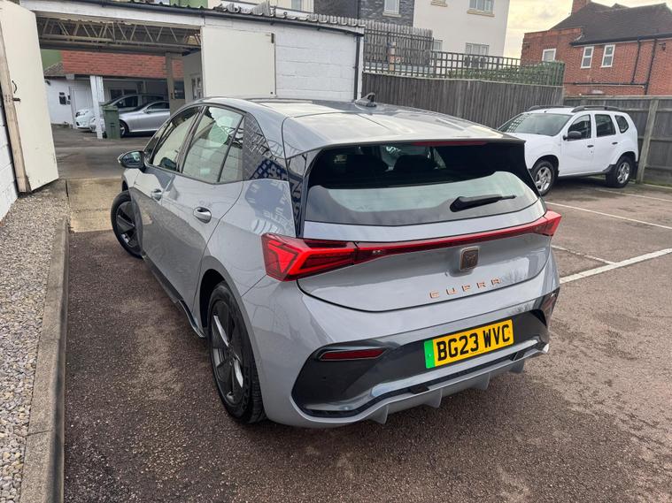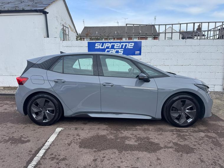 STILL UNDER MANUFACTURES WARRANTY !THIS 2023 CUPRA Born V1 is a superb example, having had only one owner since new. This electric hatchback offers a compelling blend of performance and practicality, boasting a 62 kWh battery that provides a maximum range of 264 miles. For convenience, it can be fully charged at home using a 7kW charger in approximately 9 hours and 30 minutes, or achieve an 80% charge from empty in just 37 minutes at a compatible public charging station. The Born V1 comes equipped with advanced features such as Park Assist with front and rear sensors, Bluetooth connectivity, and adaptive cruise control as part of the Pilot M system, which also includes a rear parking camera. Comfort is assured with Climatronic dual-zone air conditioning, and visibility is enhanced by full LED headlights featuring Welcome Home and Adverse Weather functions.The CUPRA Born V1 stands out with its impressive acceleration, reaching 0-62mph in a swift 7.3 seconds, demonstrating its dynamic capabilities. This performance, combined with its substantial 264 mile electric range, positions it favourably against other vehicles in its class. Furthermore, the generous boot space ensures that practicality is not compromised, making it an ideal choice for everyday use and longer journeys alike.BATTERY HEATH AT 91.7%.
