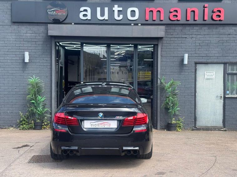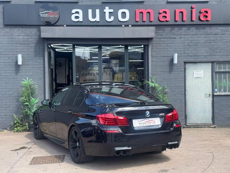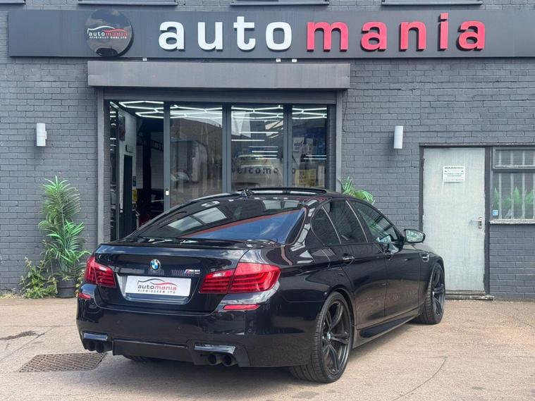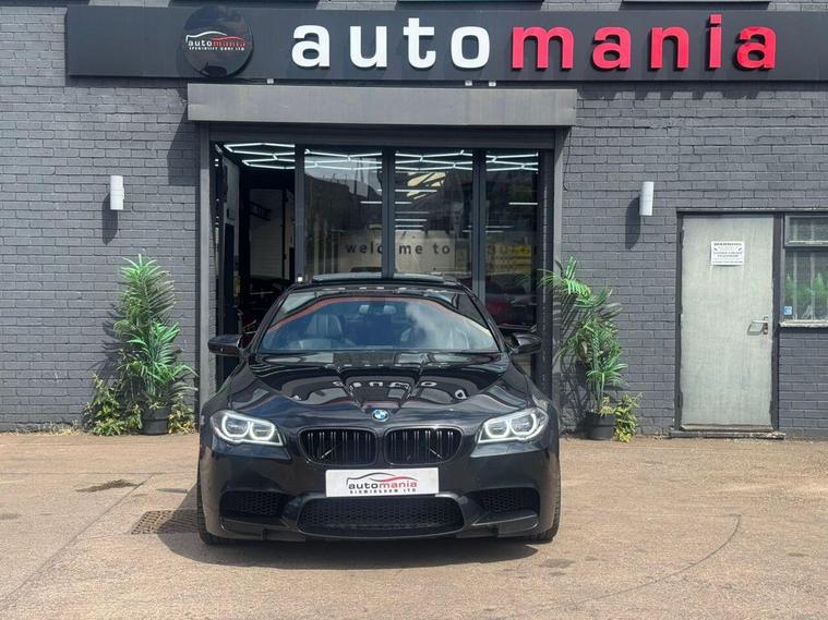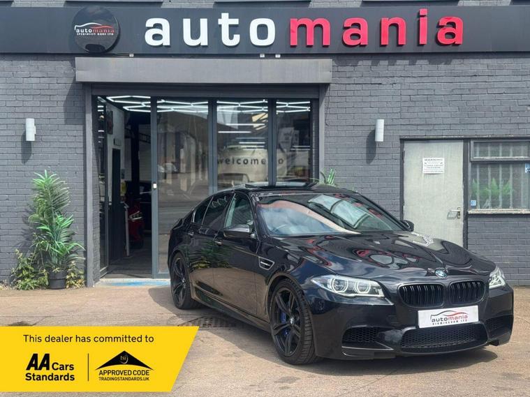 2014 BMW M5 finished in Metallic black. this car is a well Equipped Great Car. Includes Interior Features such as; Adjustable Head Restraints, Air Conditioning, Bottle Holders - Front Centre Console and Door, Bottle Holders - Rear Door, Door Courtesy Lights, Driver and Passenger Sun Visor with Ticket Holder, Driver Seat Height Adjustment, Front Door Pockets, Height Adjustable Steering Column, Luggage Compartment Light, Rear Door Pockets, Split Folding Rear Seats - 60-40, Sun Visors with Vanity Mirrors Exterior Features, Allow wheels, Door Handles - Body Coloured, Door Mirrors - Body Coloured, Electric Adjustment and Heated Door Mirrors, Electric Windows - Front and Rear, One Touch Down Drivers Window Control, Rear Spoiler with Integrated Brake Light, Tyre Repair Kit Other Features and Key Information 12V Power Outlet - Front x2, Cruise Control with Speed Limiter, Daytime Running Lights, Power Assisted Steering, RDS Radio-CD Player with MP3 Compatibility, Speakers x2, Trip Computer, Tyre Pressure Monitoring System - TPMS, USB and AUX Connections, ABS - Anti-Lock Brake System, Airbags - Driver, Airbags - Front Passenger, Airbags - Front Side, Airbags - Full Length Curtain, BAS - Brake Assist System, Childproof Rear Door Locks, ESP - Electronic Stability Programme, Front and Rear Seatbelt Reminder, Front Passenger Airbag De-Activation Switch, Immobiliser, ISOFIX Child Seat Anchorage Points - Rear - Outer Rear, Remote Central Locking. *NO HIDDEN ADMIN FEES* 1 YEAR AA BREAKDWON COVER* MINIMUM 3MM TYRE DEPTH, *NO EXTRA CHARGE FOR OUR 3 MONTHS WARRANTY *NO FUEL CHARGES *NO SURCHARGE FOR CREDIT CARDS We supply our vehicles with a Minimum 9 MONTHS MOT Test. If the vehicle requires a service in the next 3 months or 3000 MILES (WHICHEVER COMES SOONEST) we will service the vehicle before delivery. We are fully authorised & Regulated by the Financial Conduct Authority (FCA) and can offer a wide range of finance products and advice. Please visit our website at dealer's website to find out more about us and detailed directions to our site also view our full range of stock. With Over 65 similar cars always available..