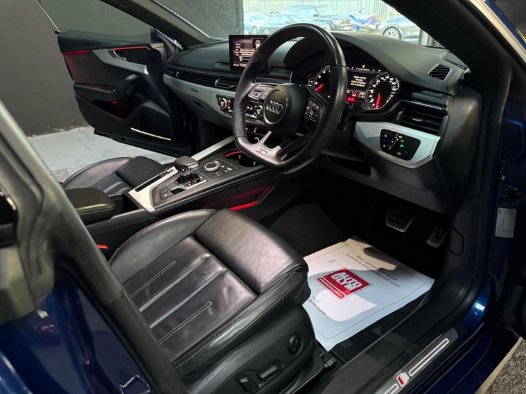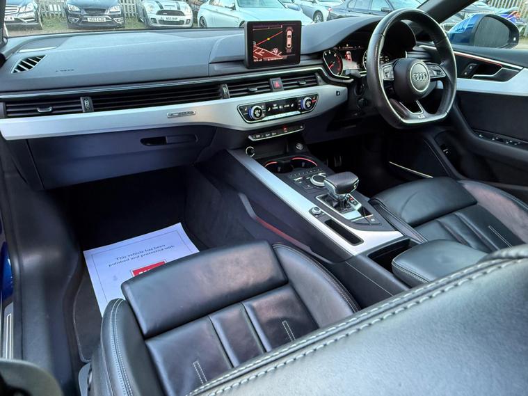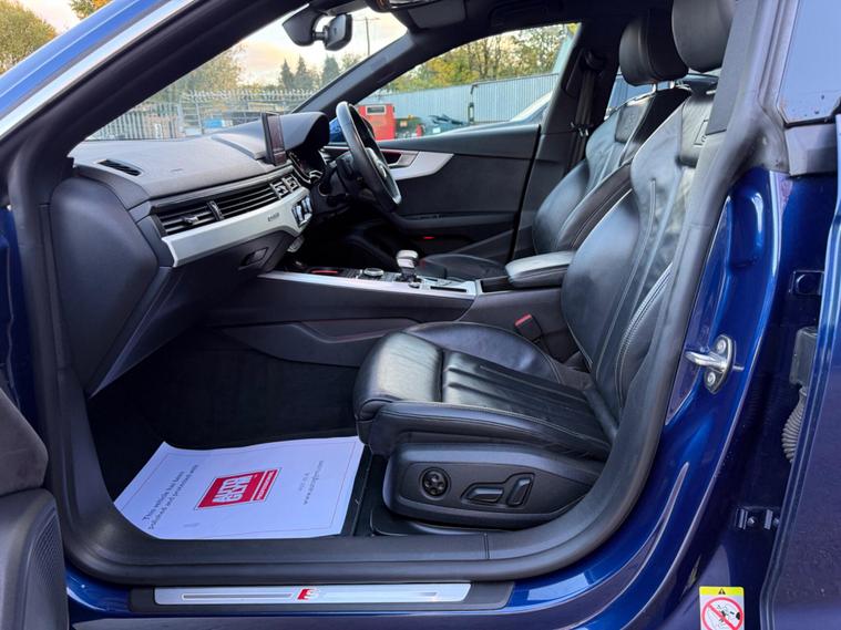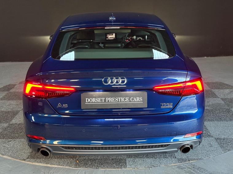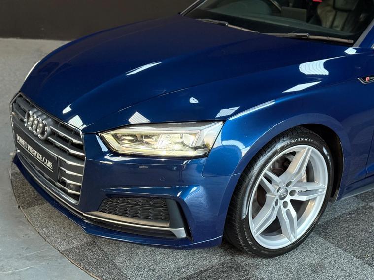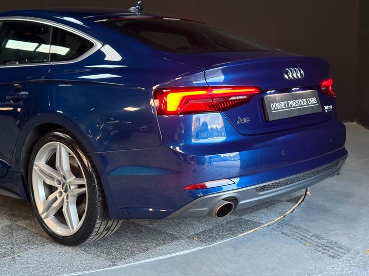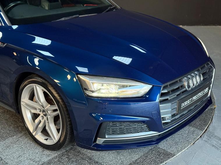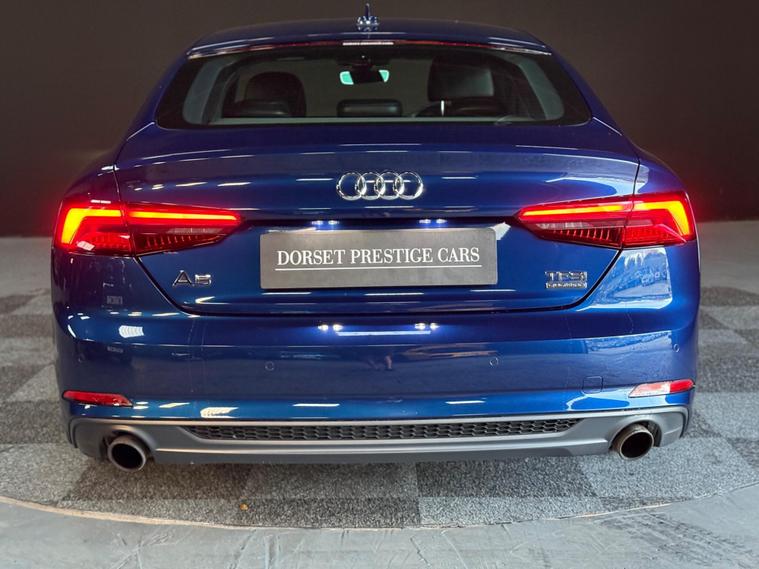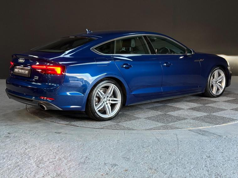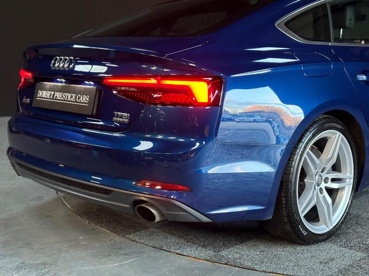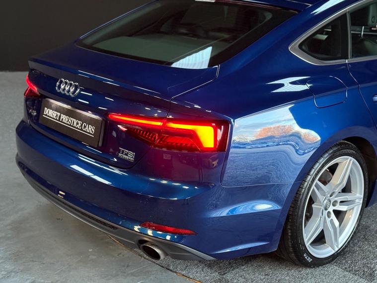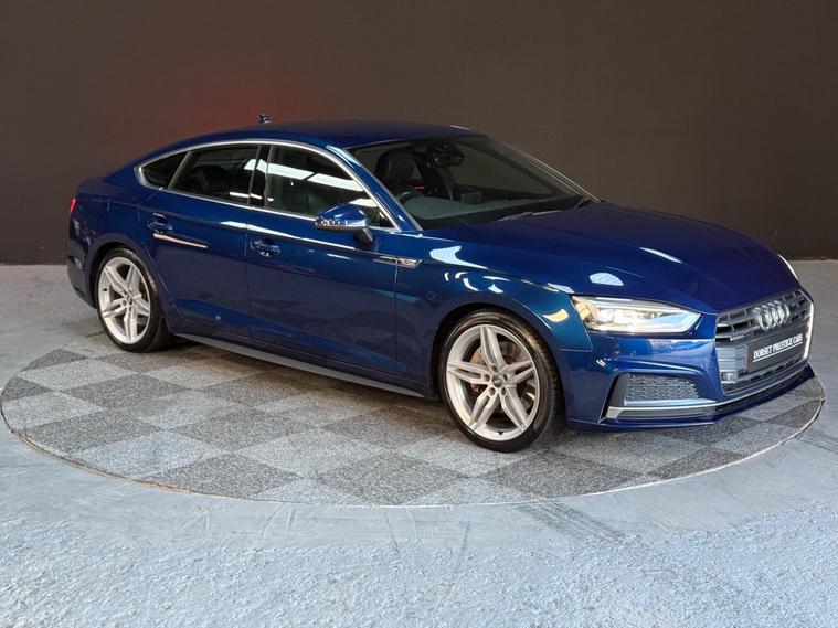 Dorset Prestige Cars are proud to present this 2018(67) Audi A5 2.0 TFSI S line Sportback S Tronic quattro Euro 6, covered 93, 660 miles backed up for Audi main service history, finished in blue with black leather interior, 19 inch silver unmarked alloy wheels, front and rear parking sensors, front and rear fog lights, satellite navigation, Bang&Olufsen audio, automatic headlights, automatic wipers, flat bottom multifunction steering wheel, cruise control, heated seats, digital dualclimate control, DAB radio, Bluetooth media stream and phone preparation, USB port, AUX port. This car comes with two remote keys original book pack with manuals. Backed up with full Audi main dealer service history. Nationwide Delivery Trailered or Driven you Choose, 6 Months Warranty+ Extended warranties available 12 Months AA Breakdown....This vehicle comes with 6 months Warranty for full peace of mind (up to 36 month extension available), 3 or 5 year ceramic coating available, train station collection service, nationwide delivery available on all vehicles. Part Exchange welcome. Open Monday to Saturday ***Viewing By Appointment Only*** All Major Credit and Debit Cards Accepted. Please visit our website for more information on our services and to view our other vehicles currently in stock. Secure this vehicle today for £500 deposit T&C’s Apply! All our vehicles are HPI clear and have been through our workshop for a full health check for peace of mind. See our 5***** reviews , Buy with confidence through us. Find us on Facebook Instagram and YouTube! View our full range of cars on our website and Autotrader profile..