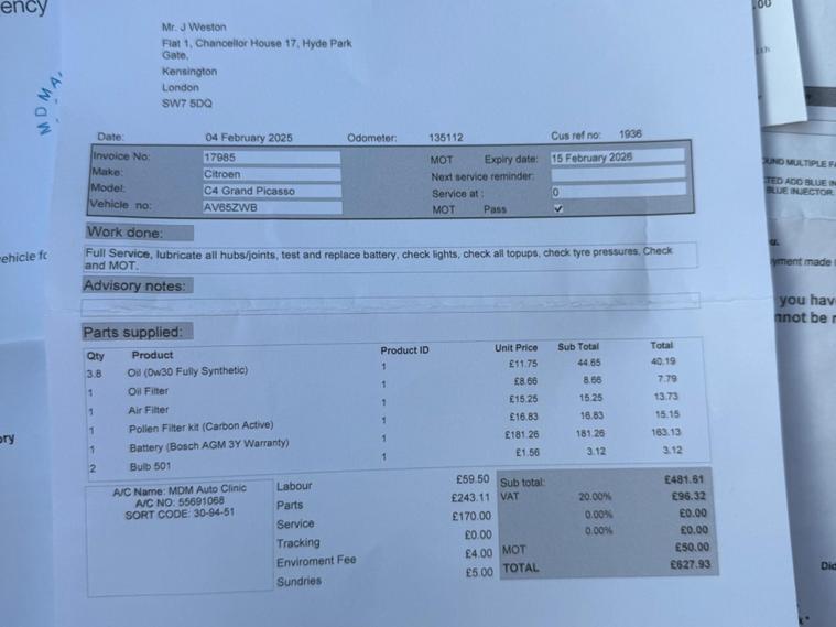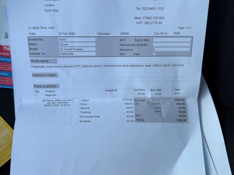 P/X to clear this Citroen c4 grand Picasso 7 seater , lots of service history and last one done on feb 2025 , dpf and adblue also serviced and cleared.