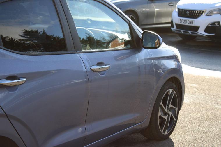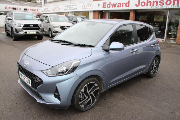 This 2025 Hyundai i10 Premium is a superb example, having been owned by just one careful keeper from new. This compact and stylish hatchback is powered by an efficient 1.2 litre petrol engine, meeting Euro 6 emissions standards. Inside, you'll find a host of convenient features designed to enhance your driving experience, including wireless Android Auto for seamless smartphone integration, a rear view parking camera to assist with manoeuvring, and a wireless phone charger to keep your devices powered up. Enjoy effortless connectivity with Bluetooth and voice recognition, and experience added comfort with heated front seats.The Premium trim level of this Hyundai i10 offers a compelling package, making it a standout choice in its class. Its low insurance group rating is a significant advantage, suggesting lower running costs compared to many other vehicles. The combination of its single owner provenance, modern technology like wireless Android Auto and a rear view parking camera, and the comfort of heated front seats, all contribute to a superior ownership proposition. This i10 is a practical and well equipped option for anyone seeking a reliable and feature rich compact car..